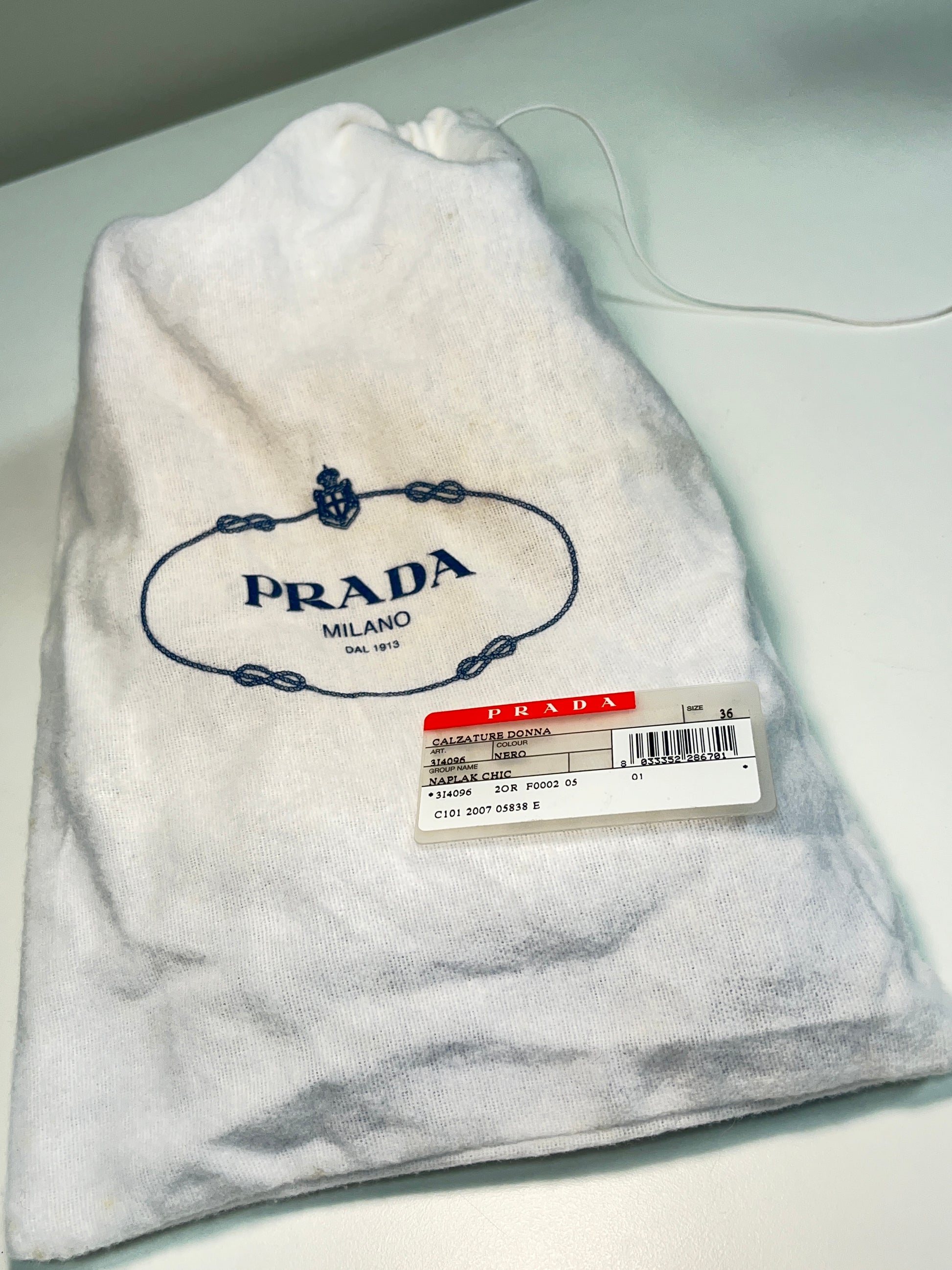 PRADA leather black buckled squared toe kitten heels with dust bag