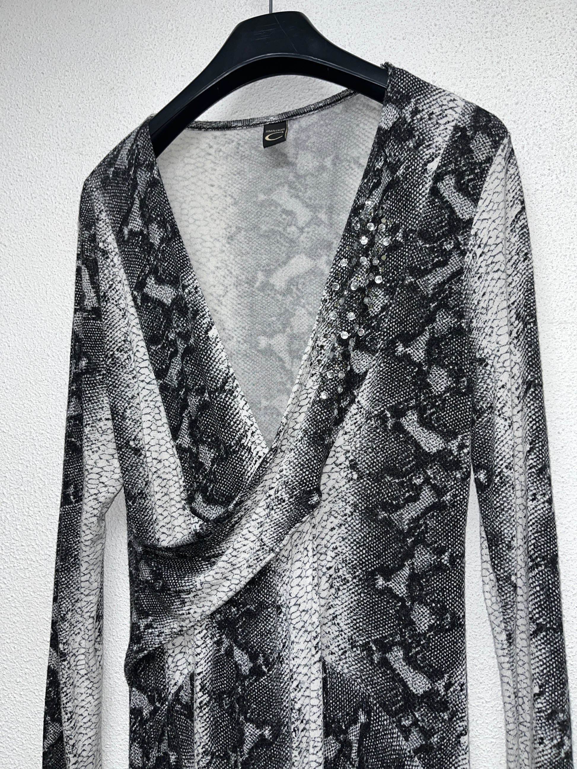 ROBERTO CAVALLI just cavalli animal / abstract print midi Dress eith attached rocks