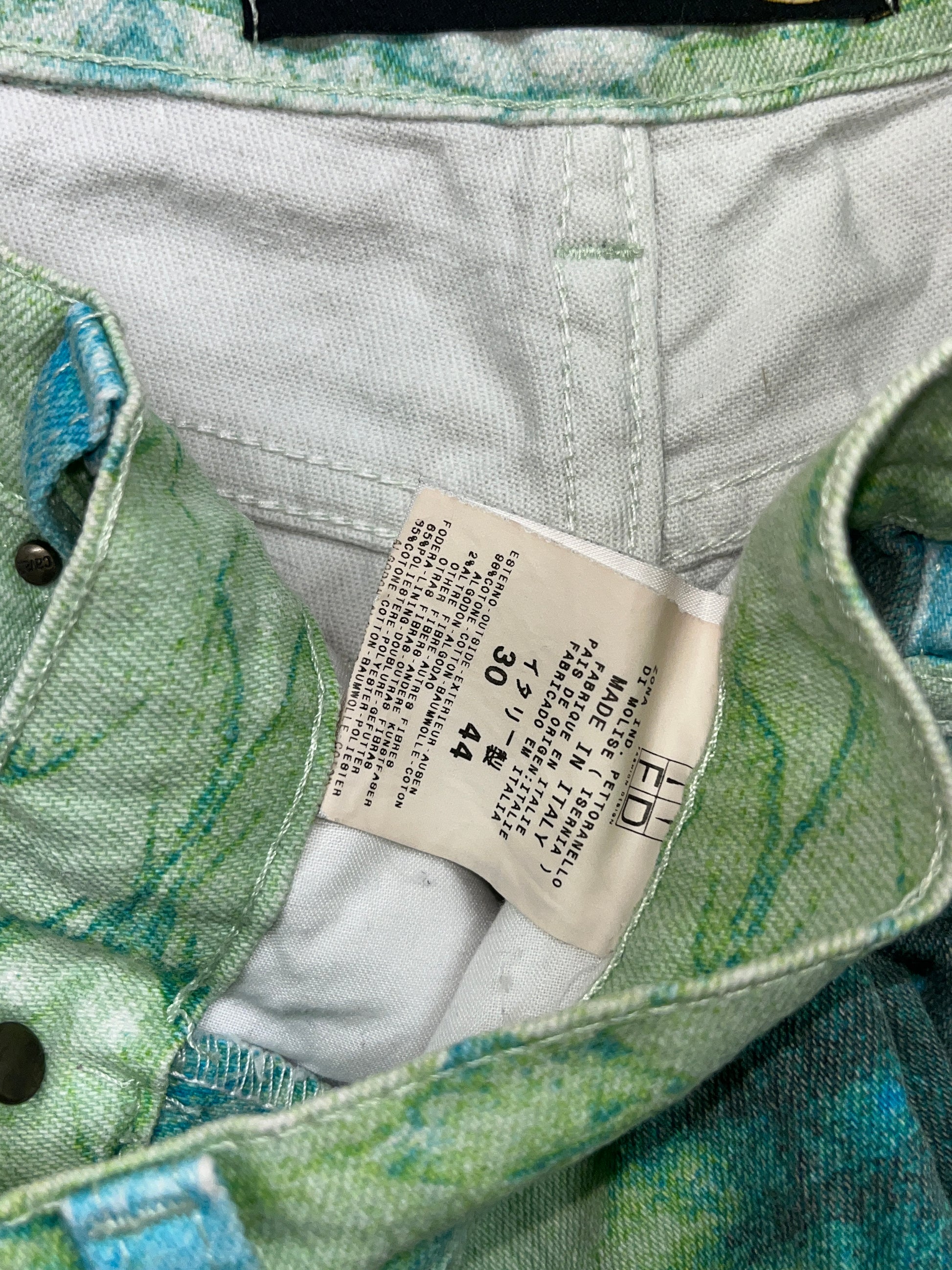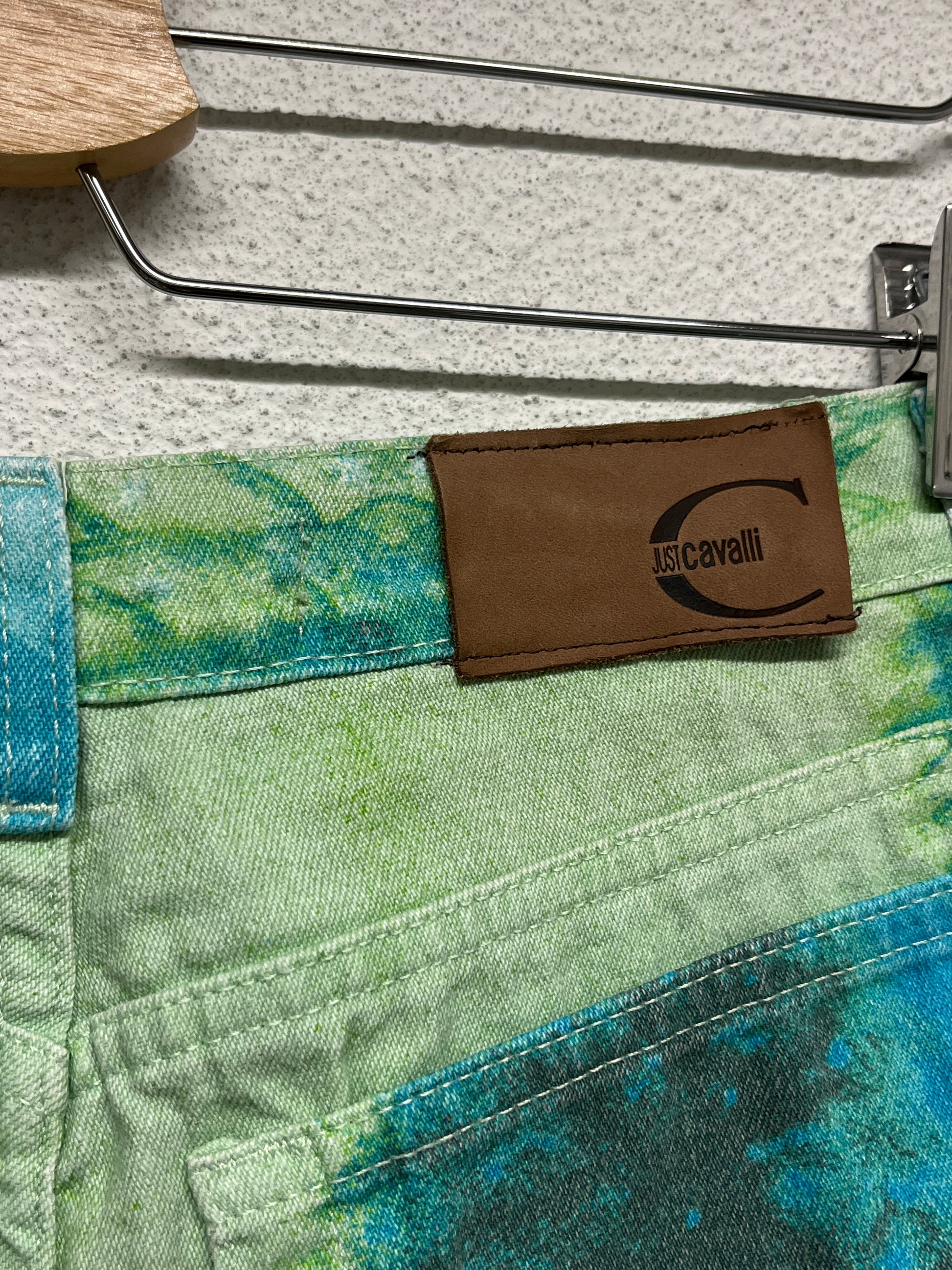 ROBERTO CAVALLI just cavalli green and blue animal-abstract print trousers
