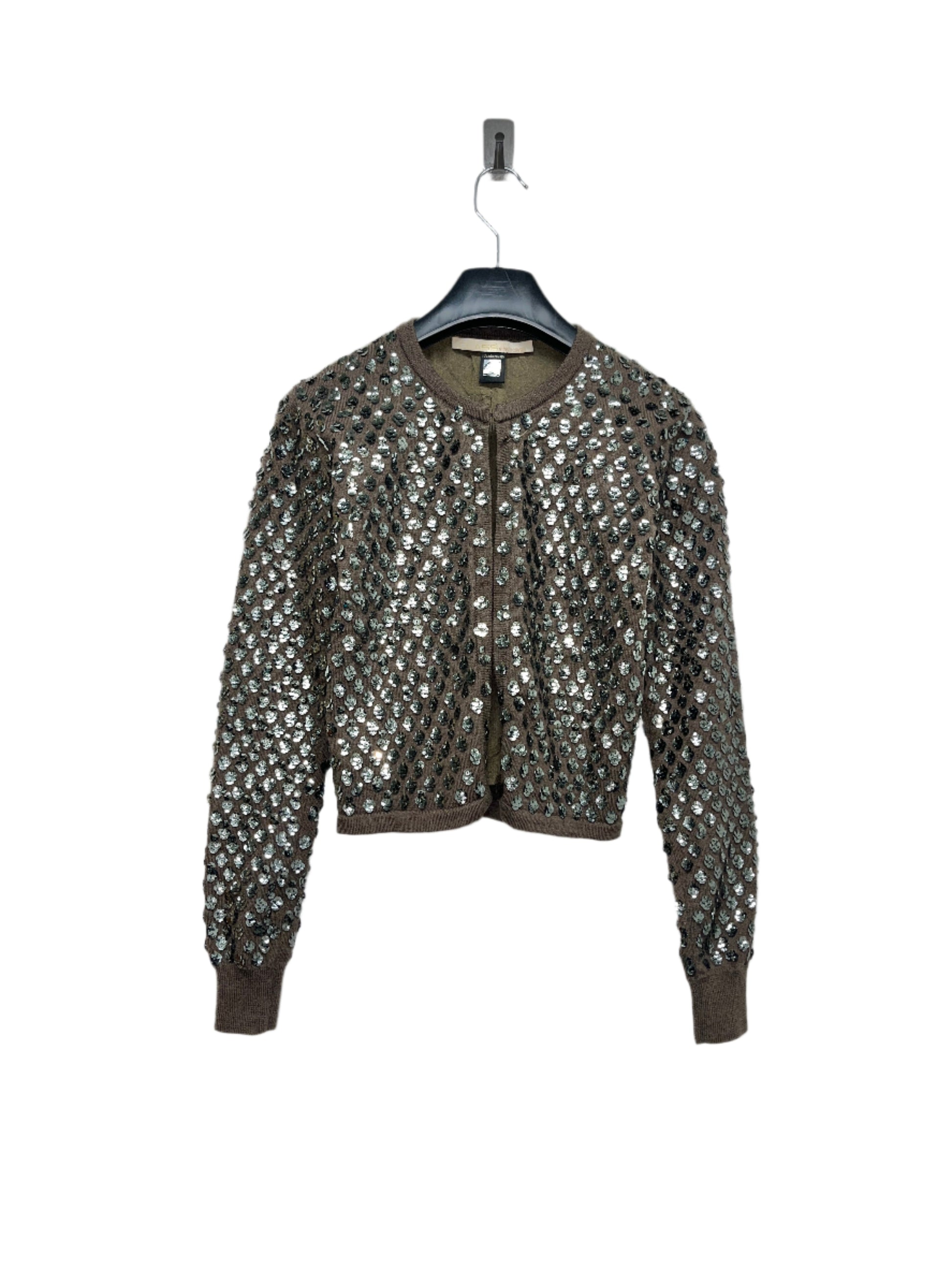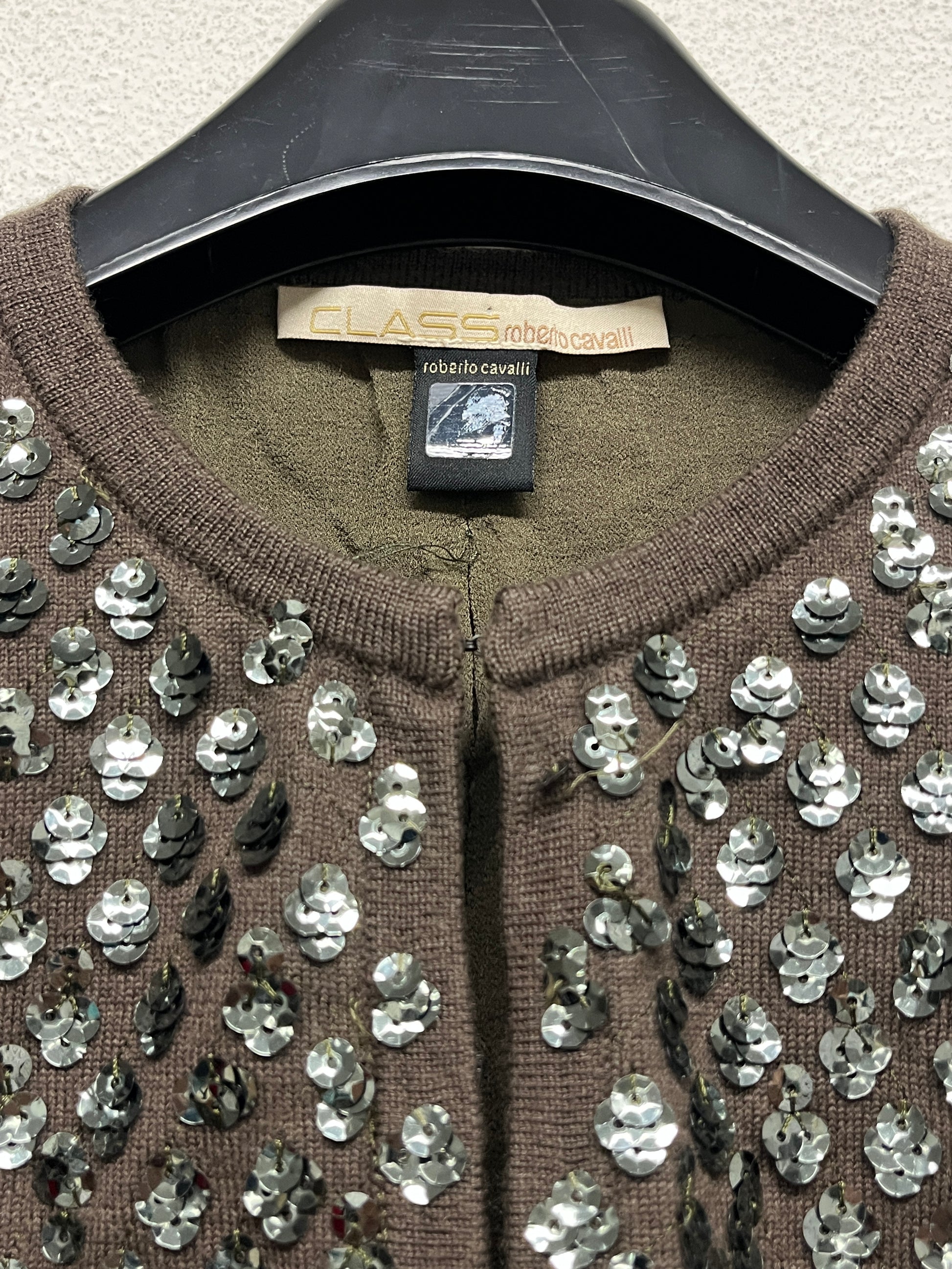 ROBERTO CAVALLI Class cavalli wool sequin khaki cropped cardigan (XS)