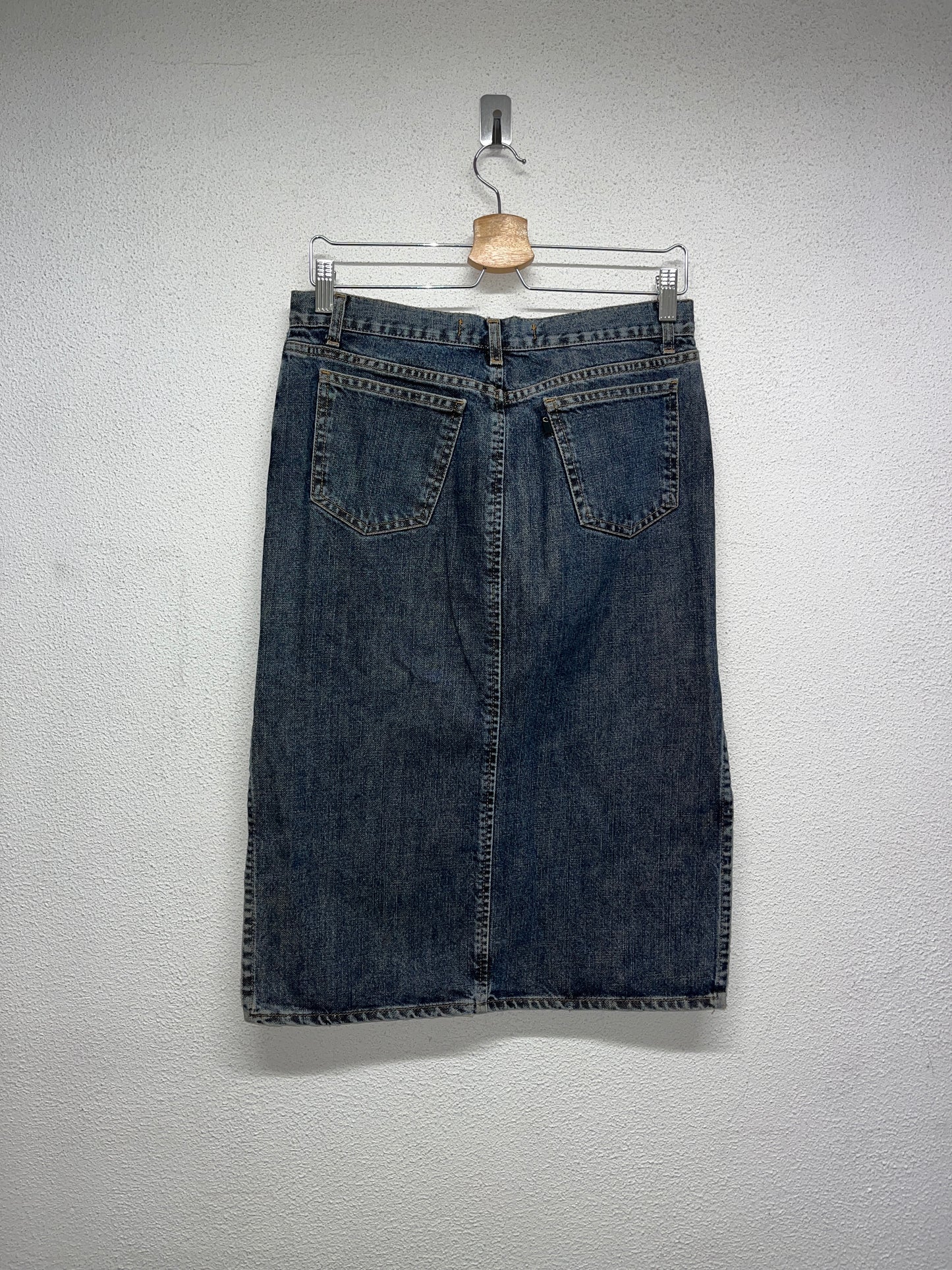 ROBERTO CAVALLI Denim skirt with snakeskin print (M)