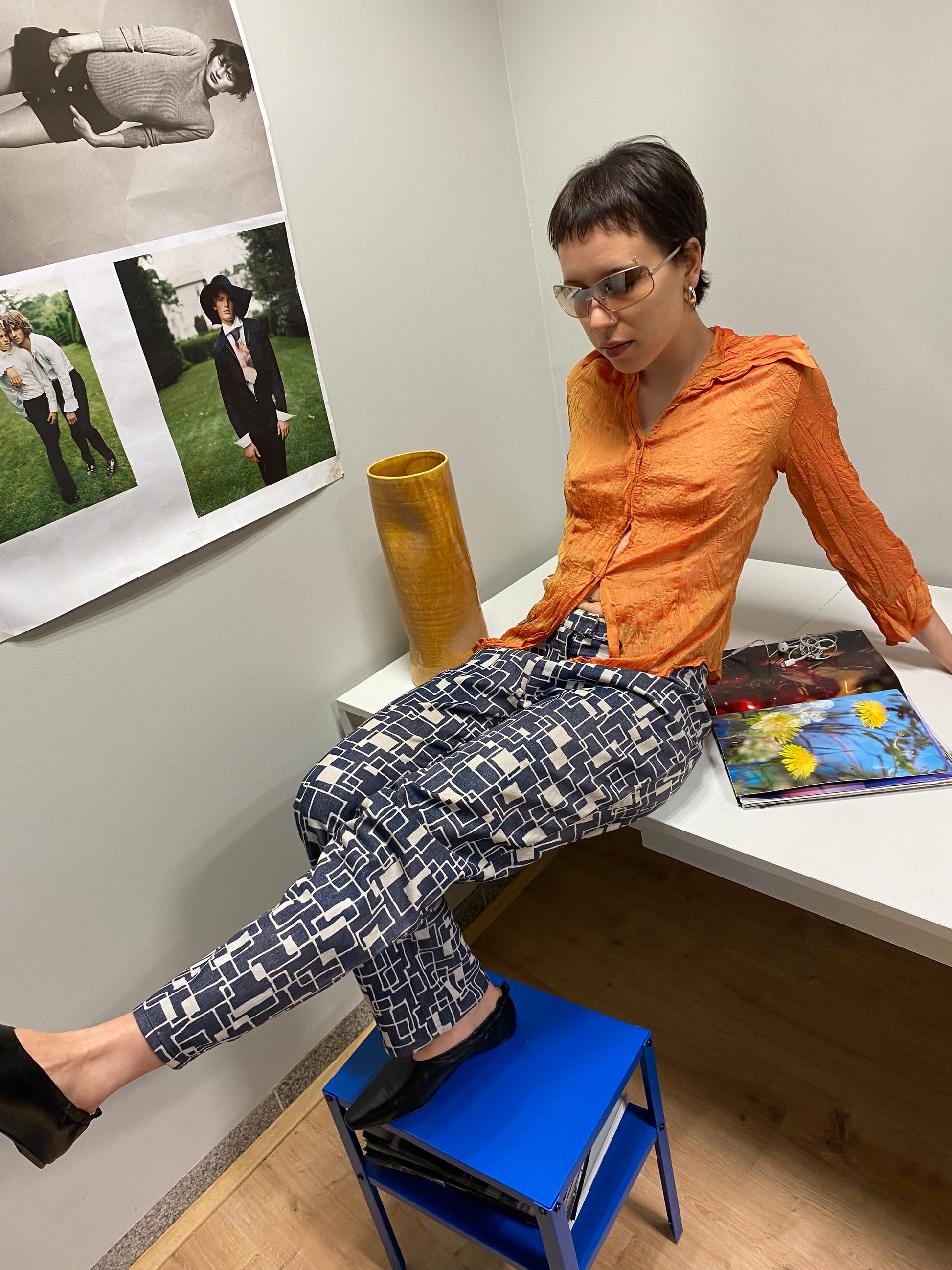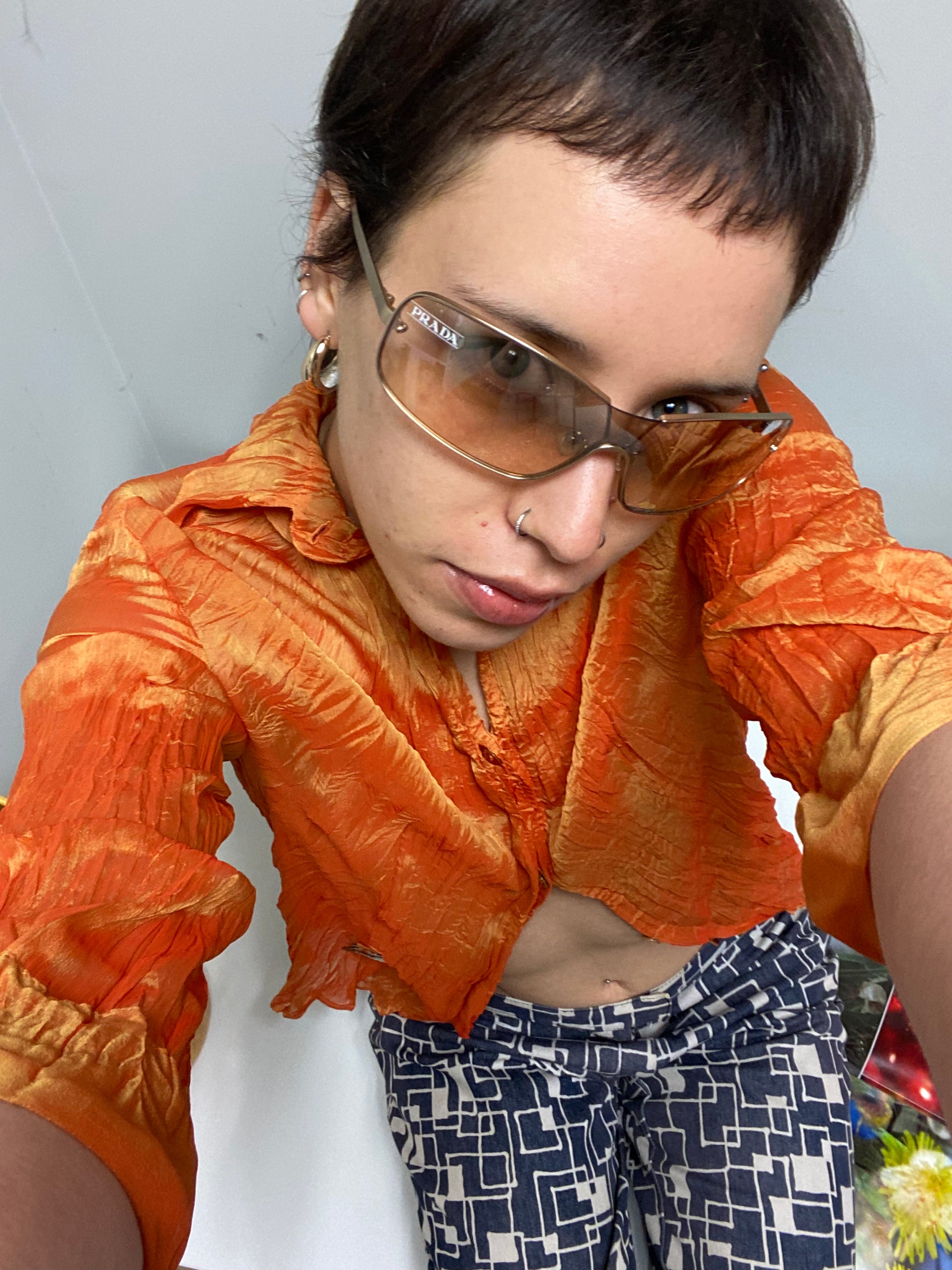 ROBERTO CAVALLI just cavalli orange wrinked-like effect shirt (M)