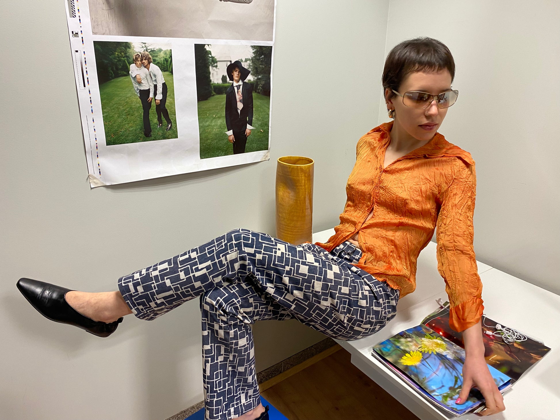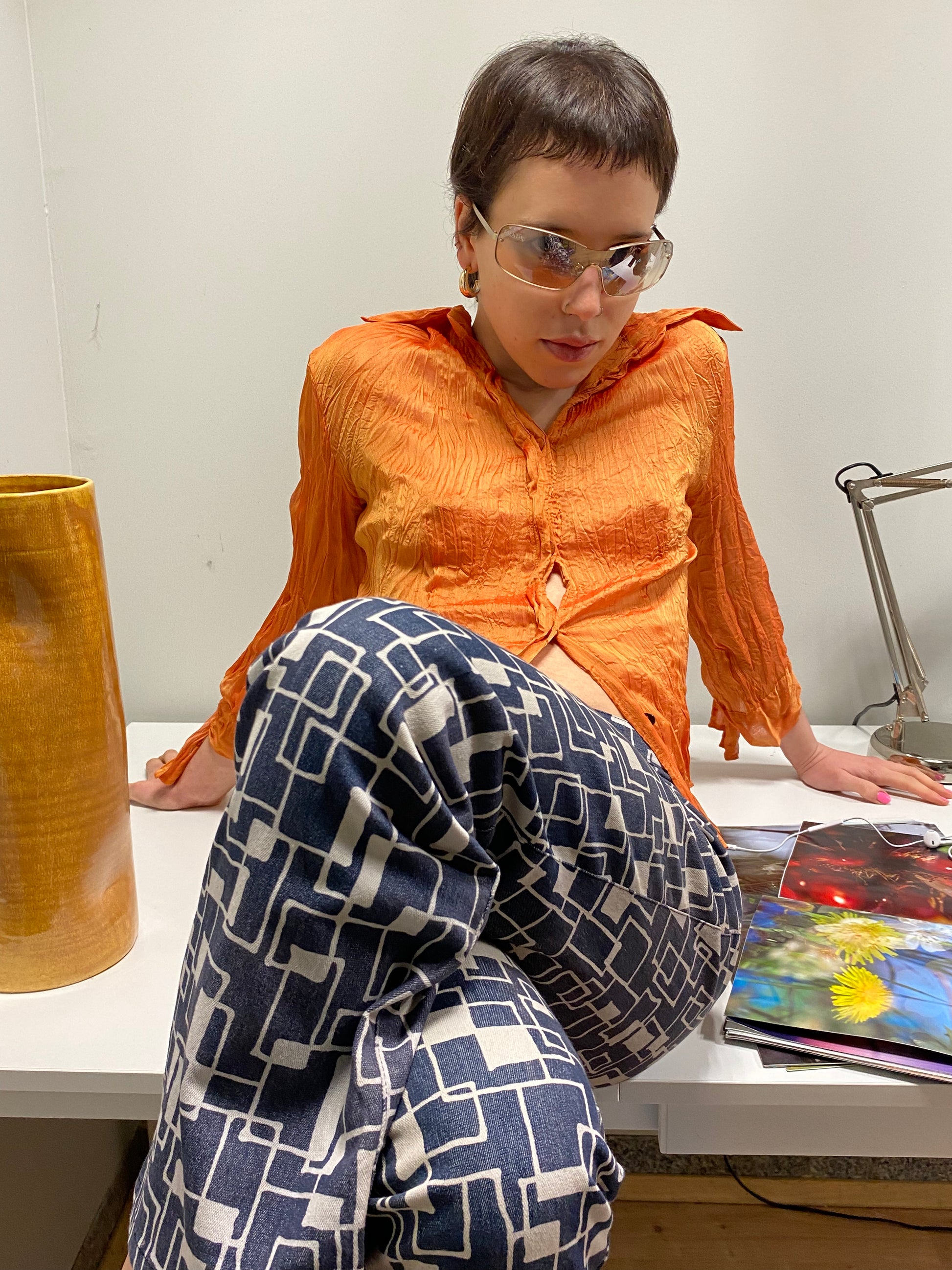 ROBERTO CAVALLI just cavalli orange wrinked-like effect shirt