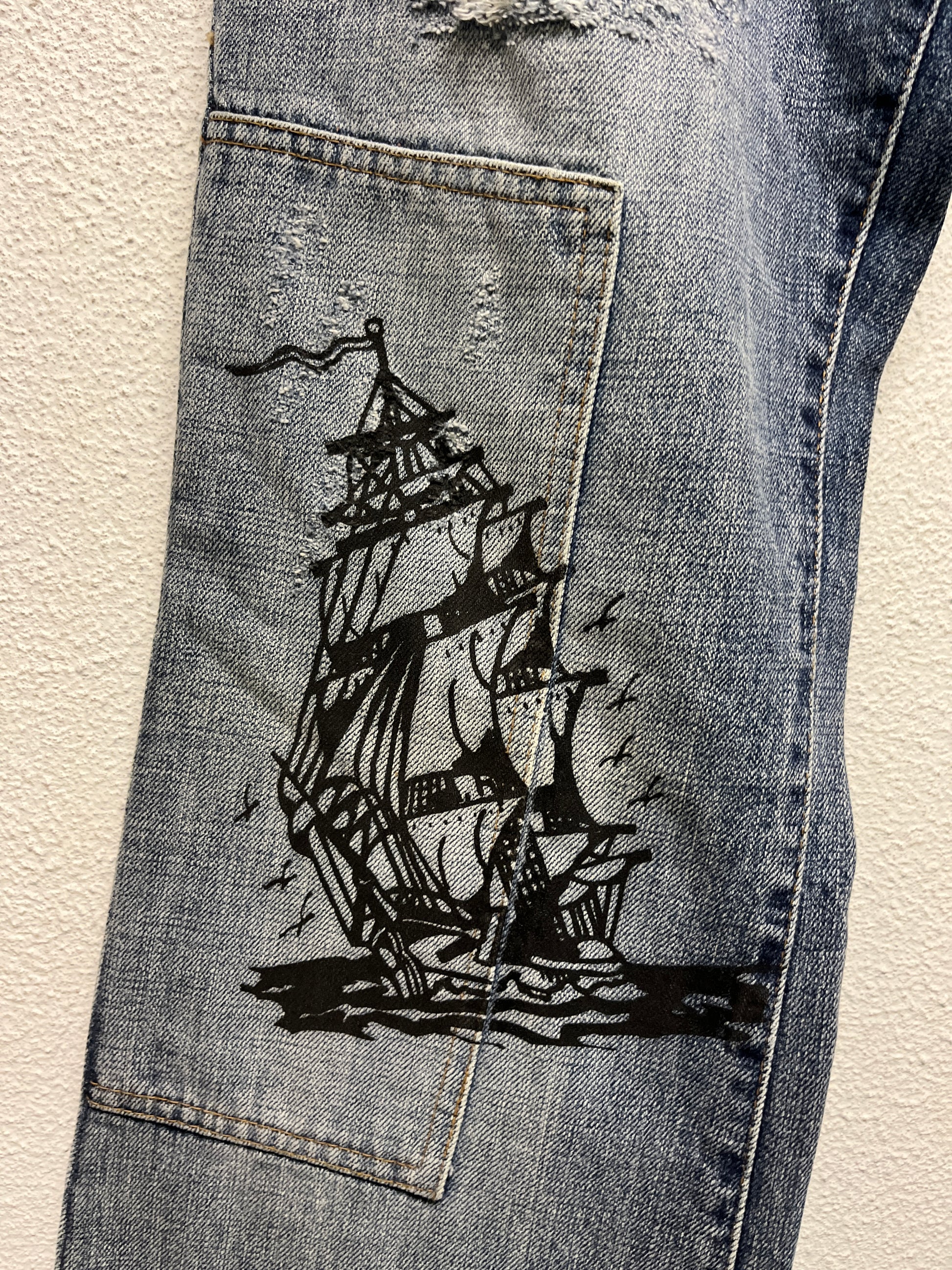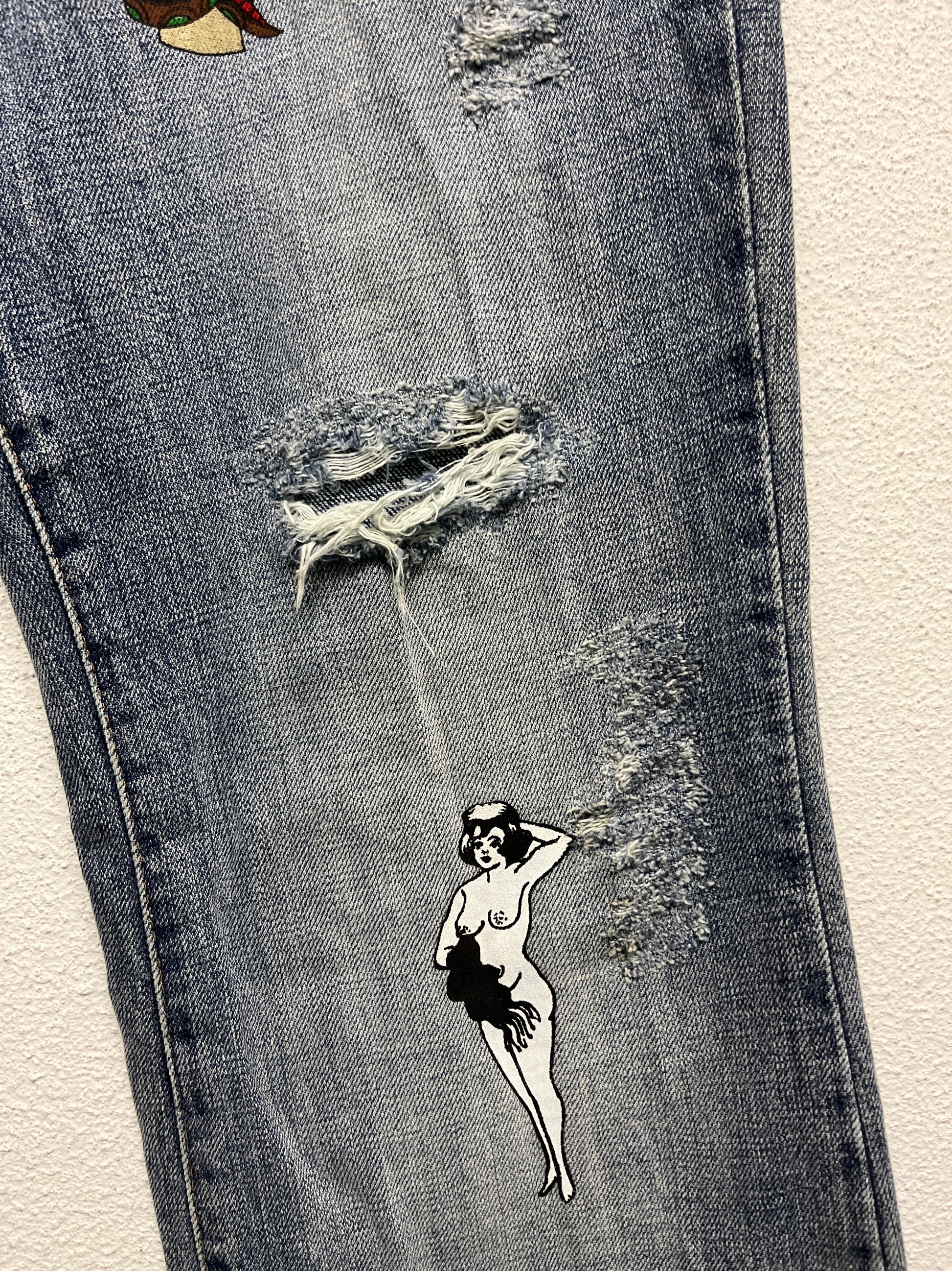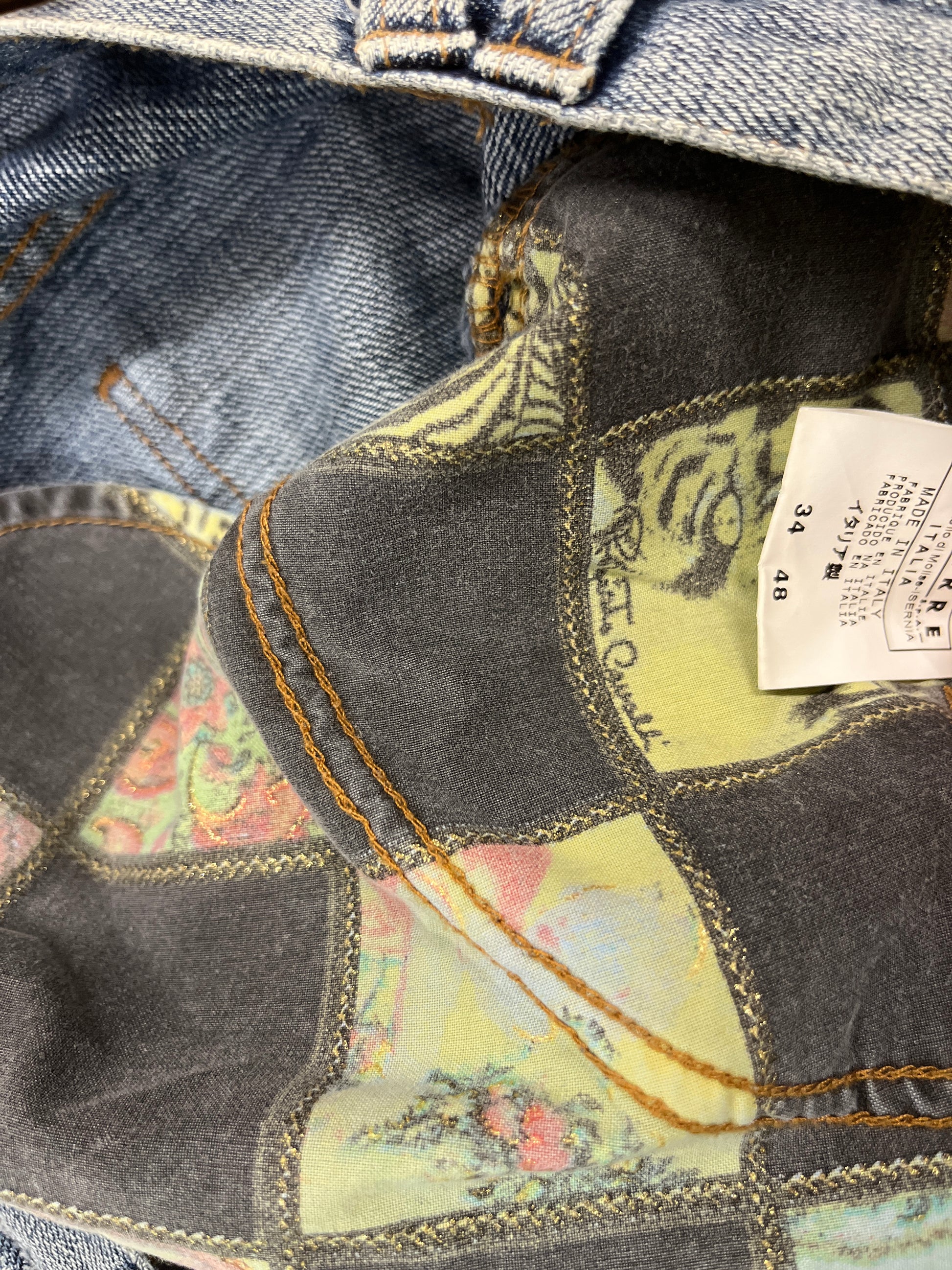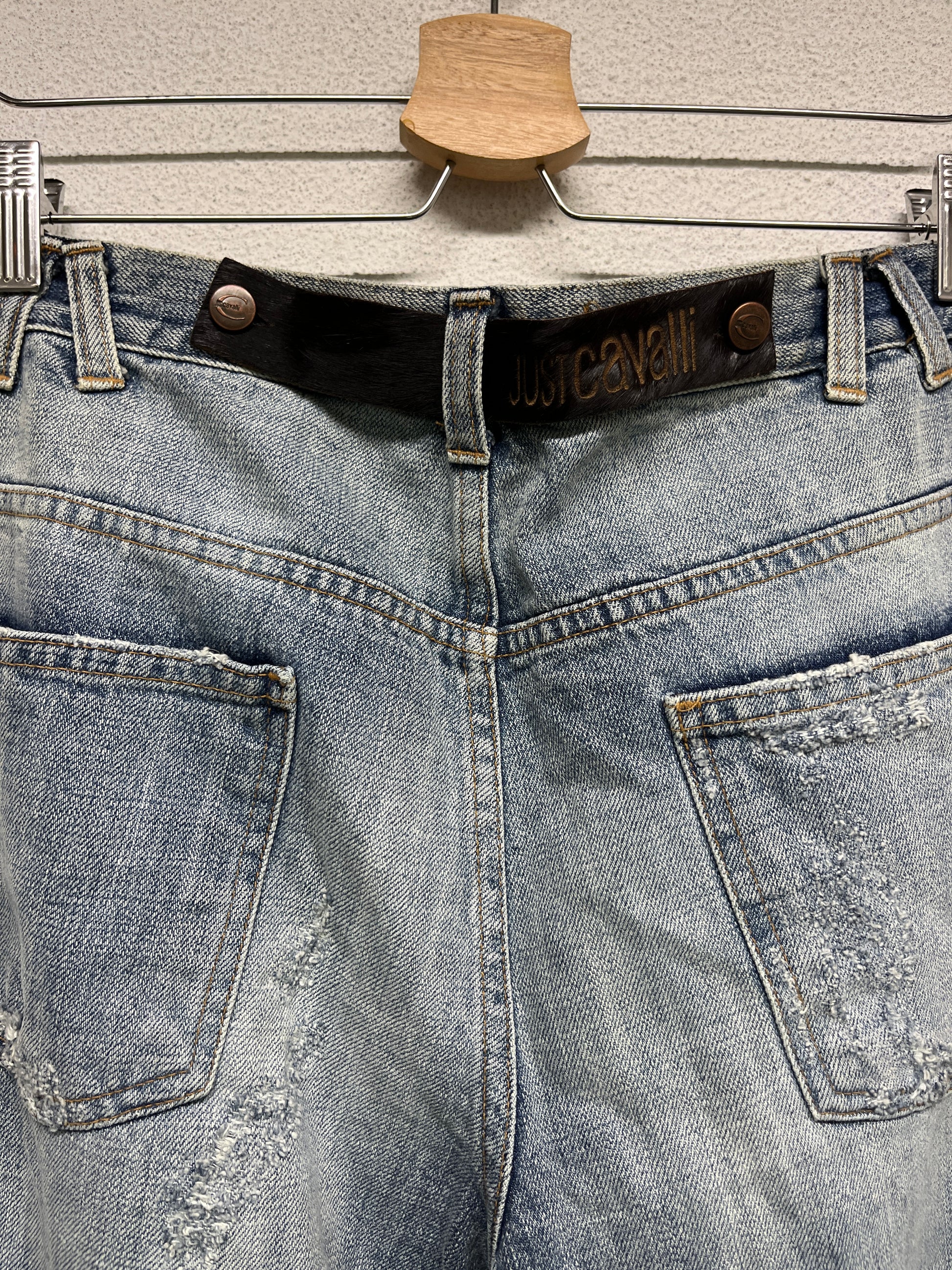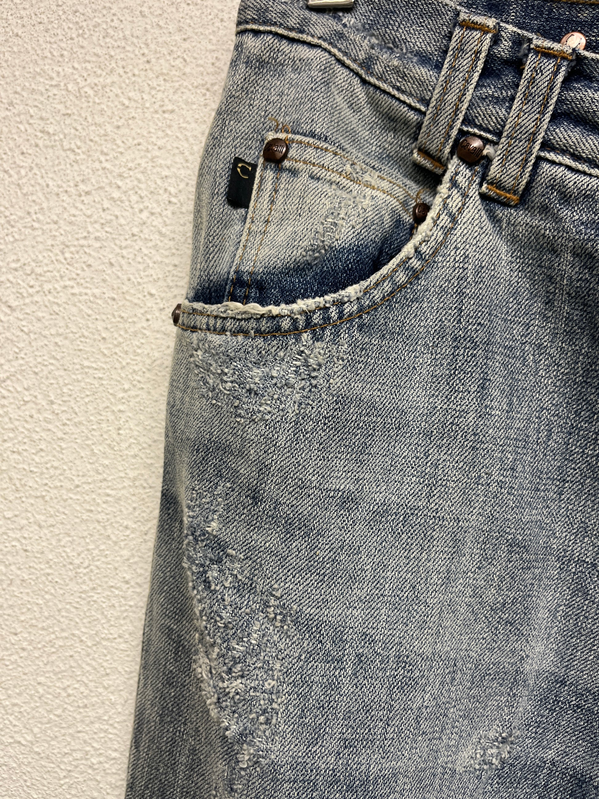 ROBERTO CAVALLI just cavalli tattoo graphic distressed denim bootcut trousers (M)