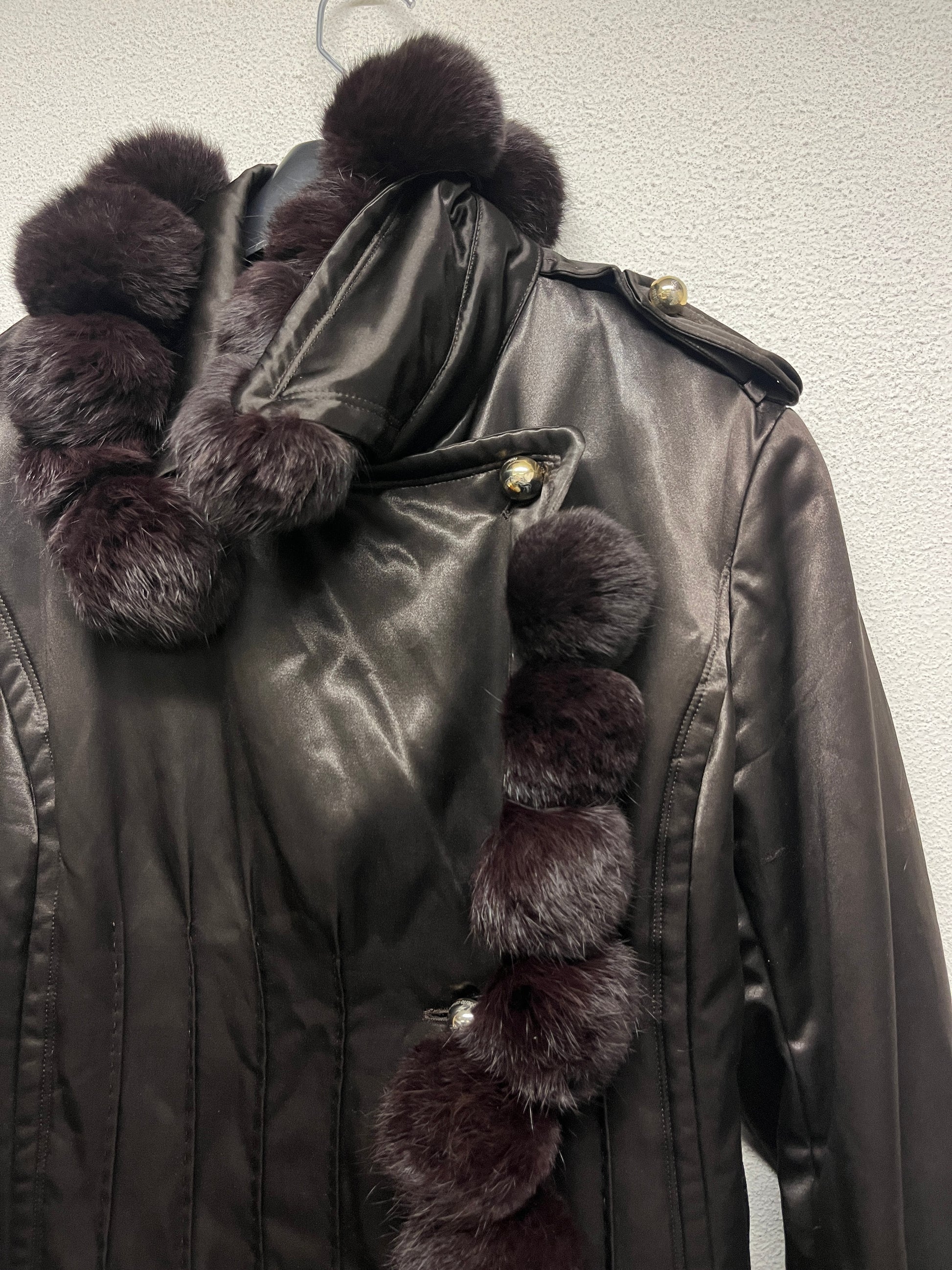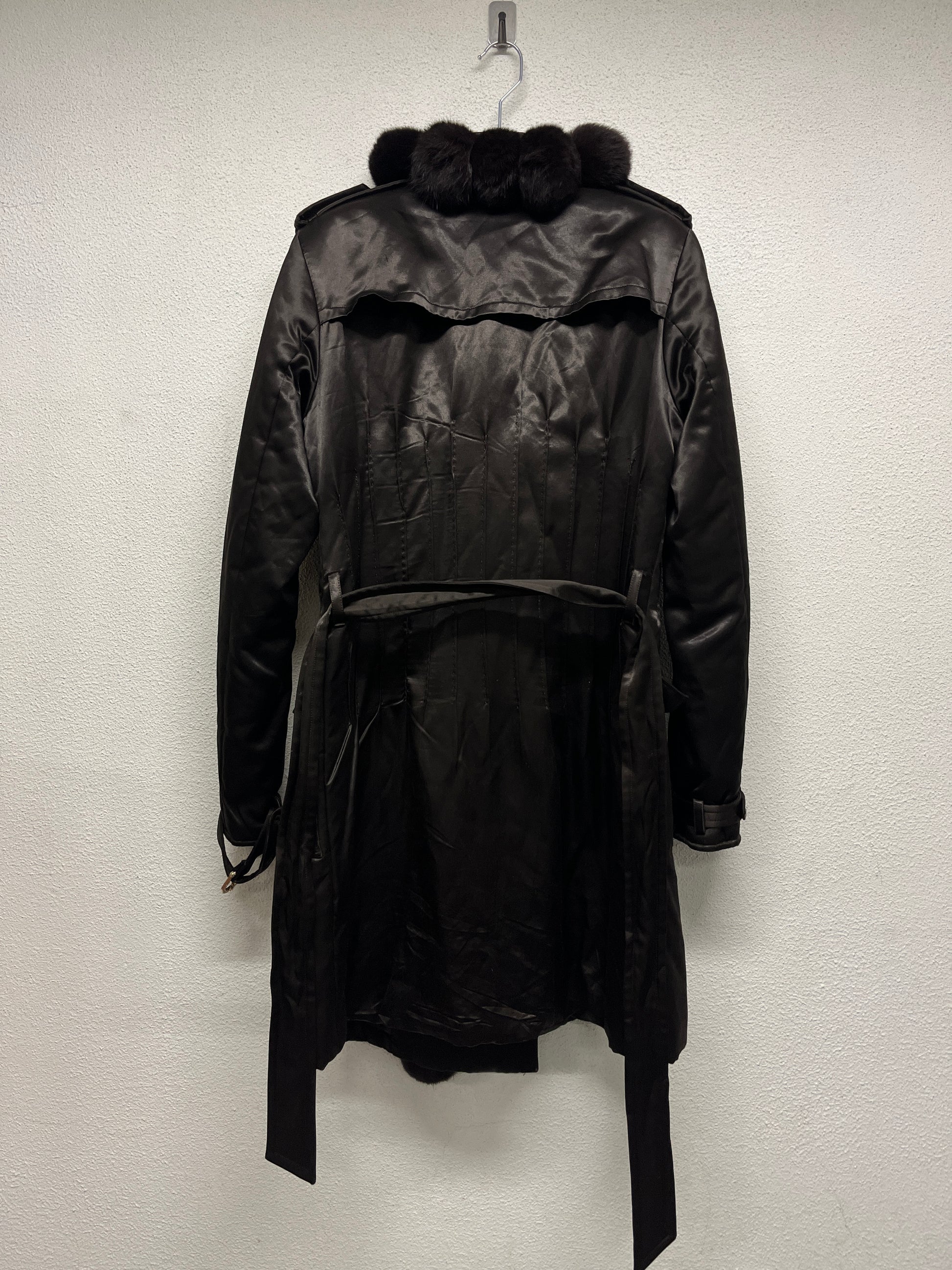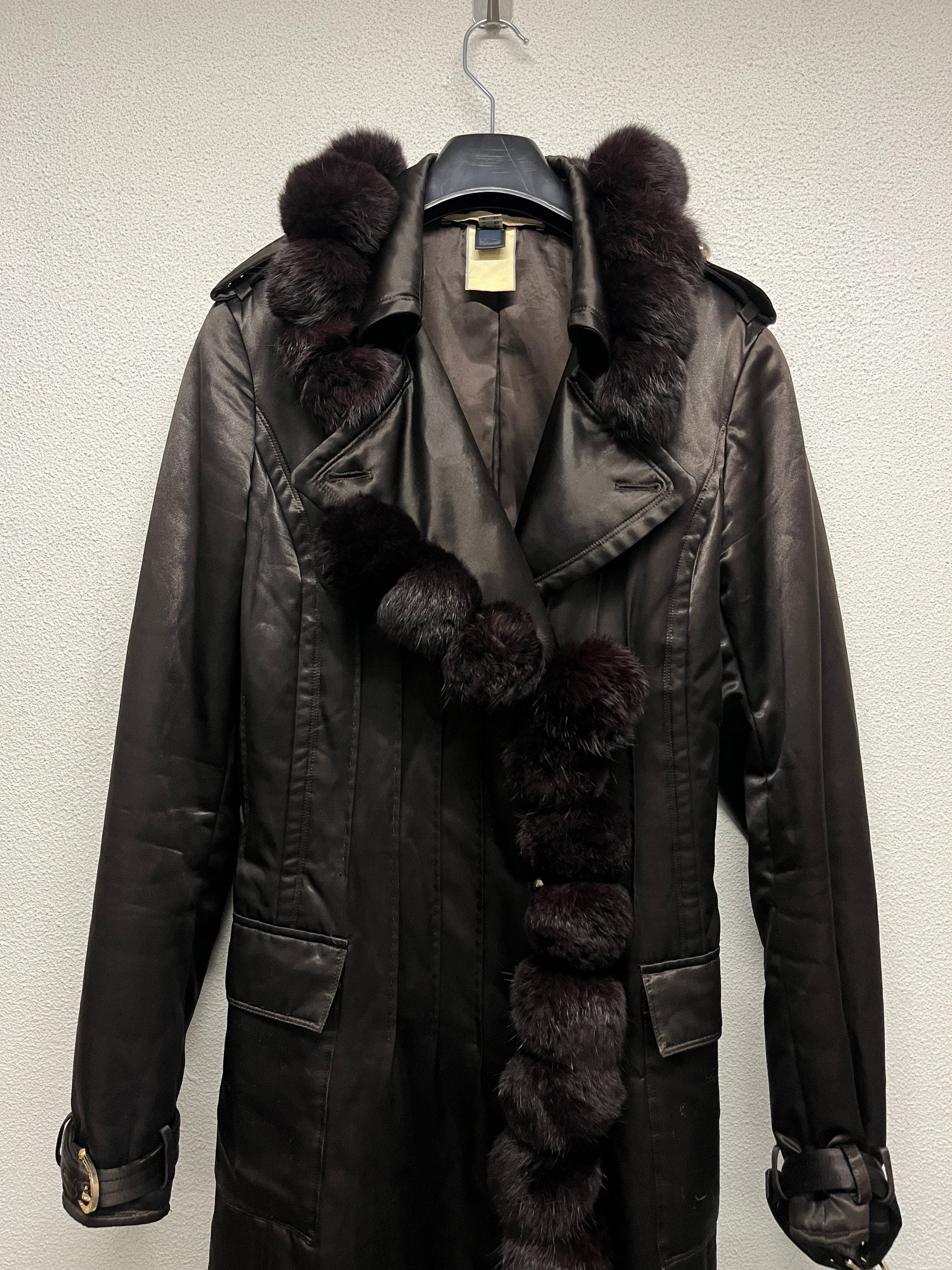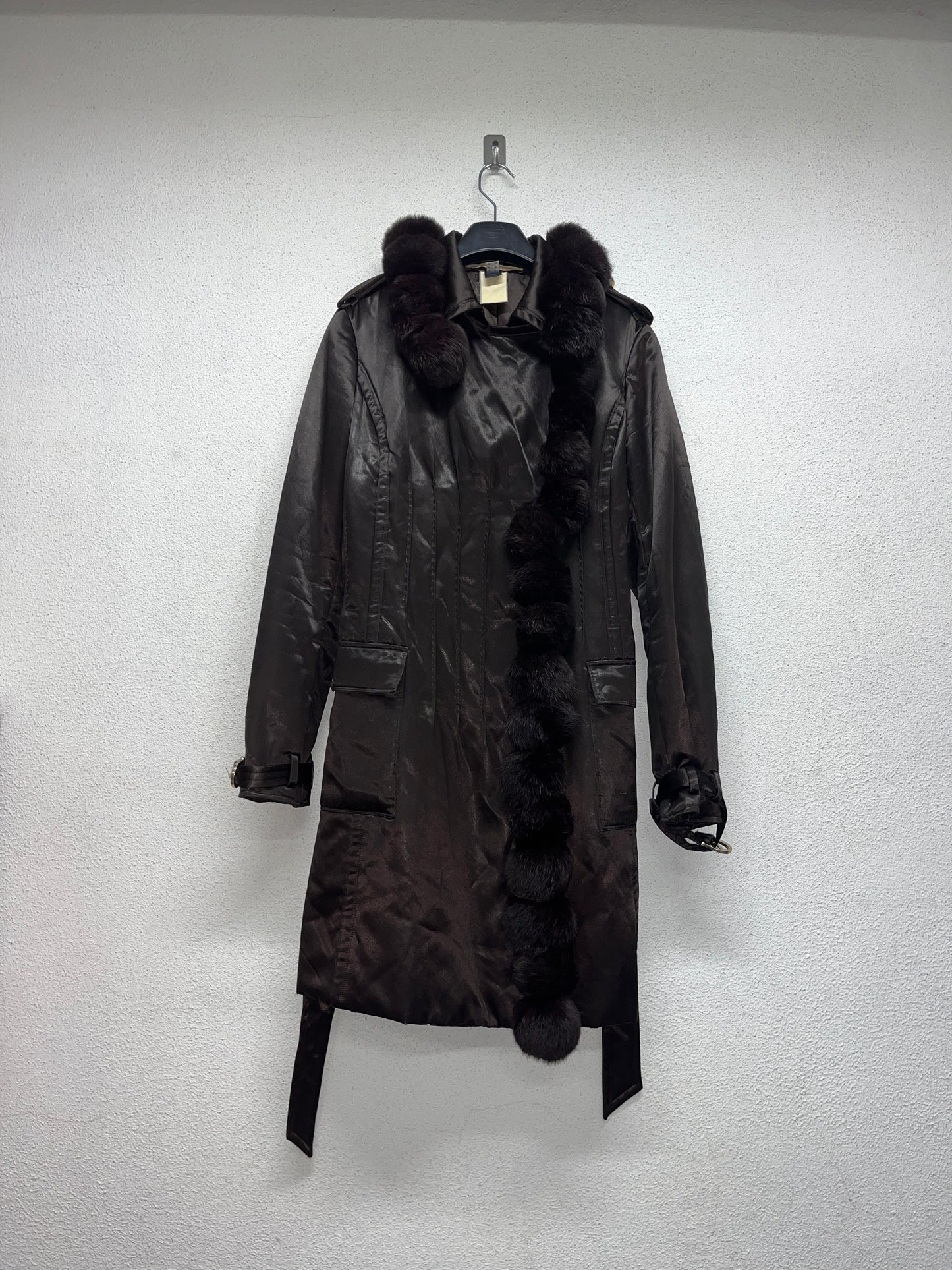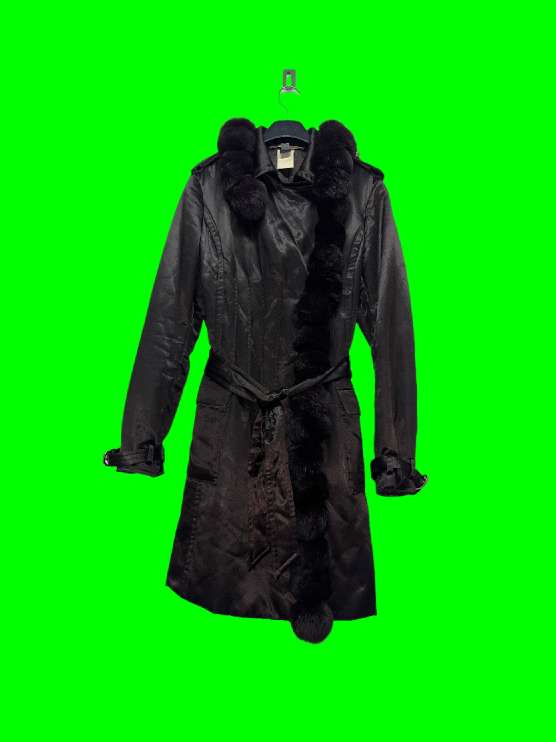 ROBERTO CAVALLI nylon belted Coat with fur balls (M)