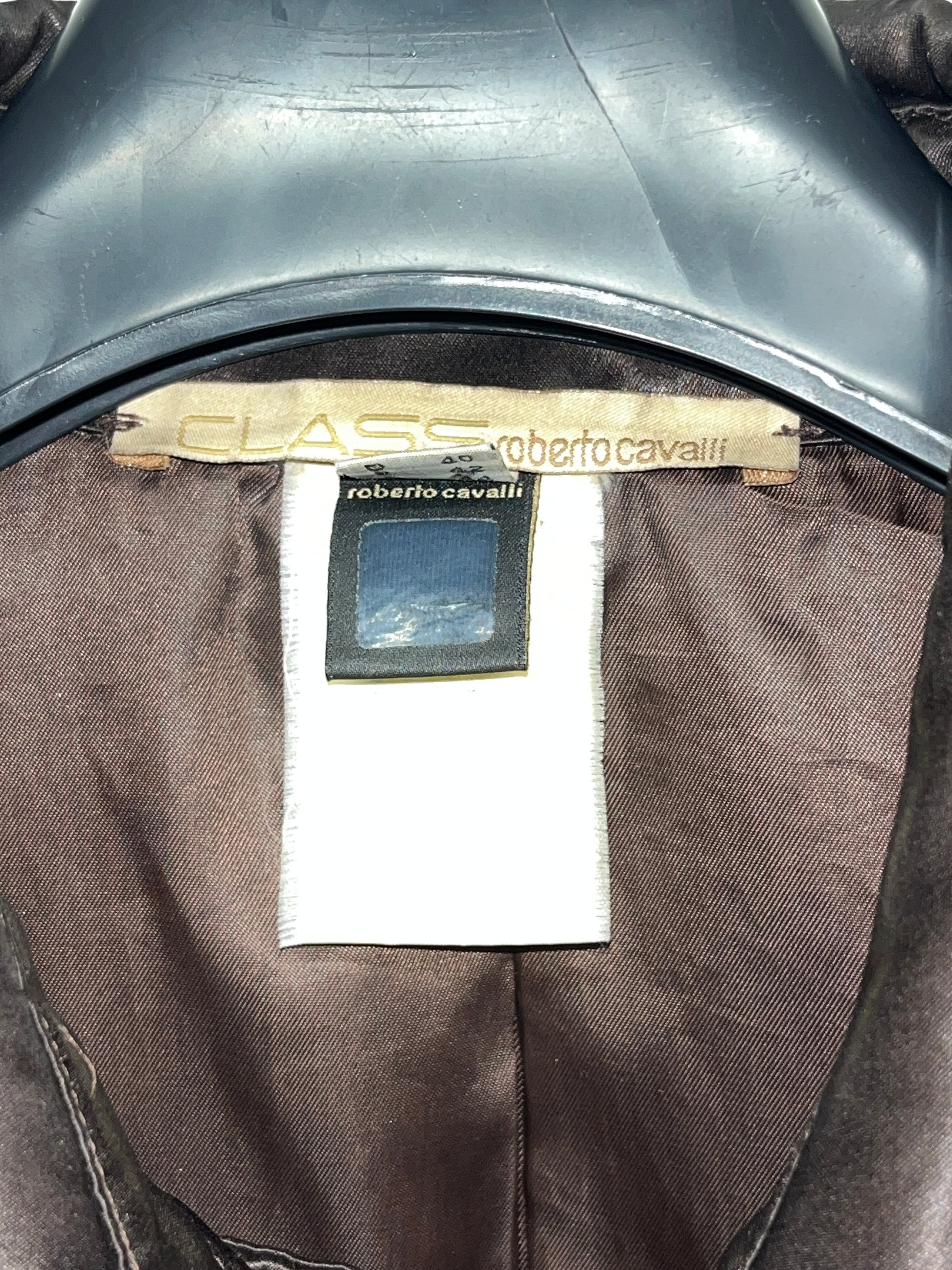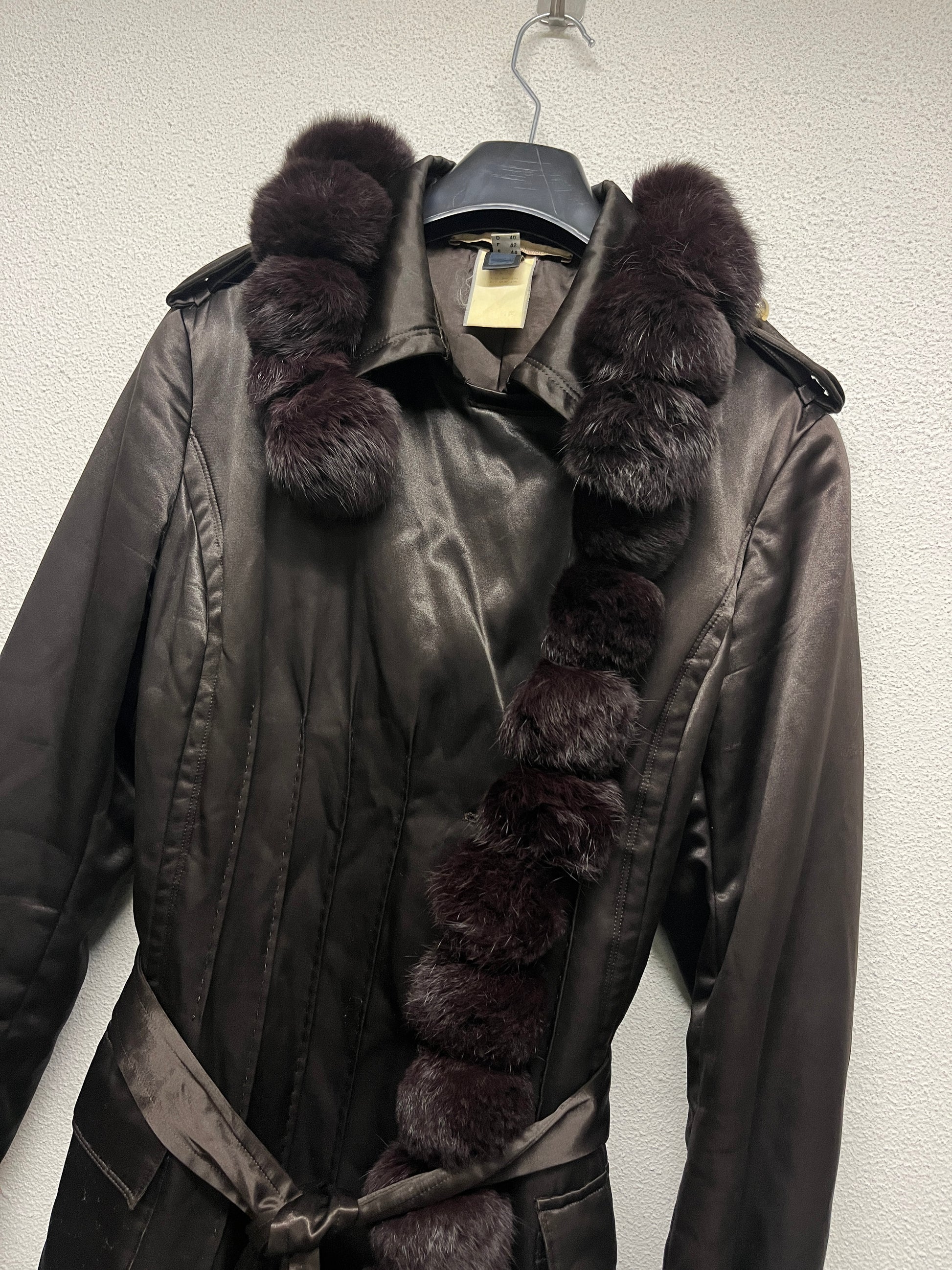 ROBERTO CAVALLI Class brown nylon belted Coat with fur balls