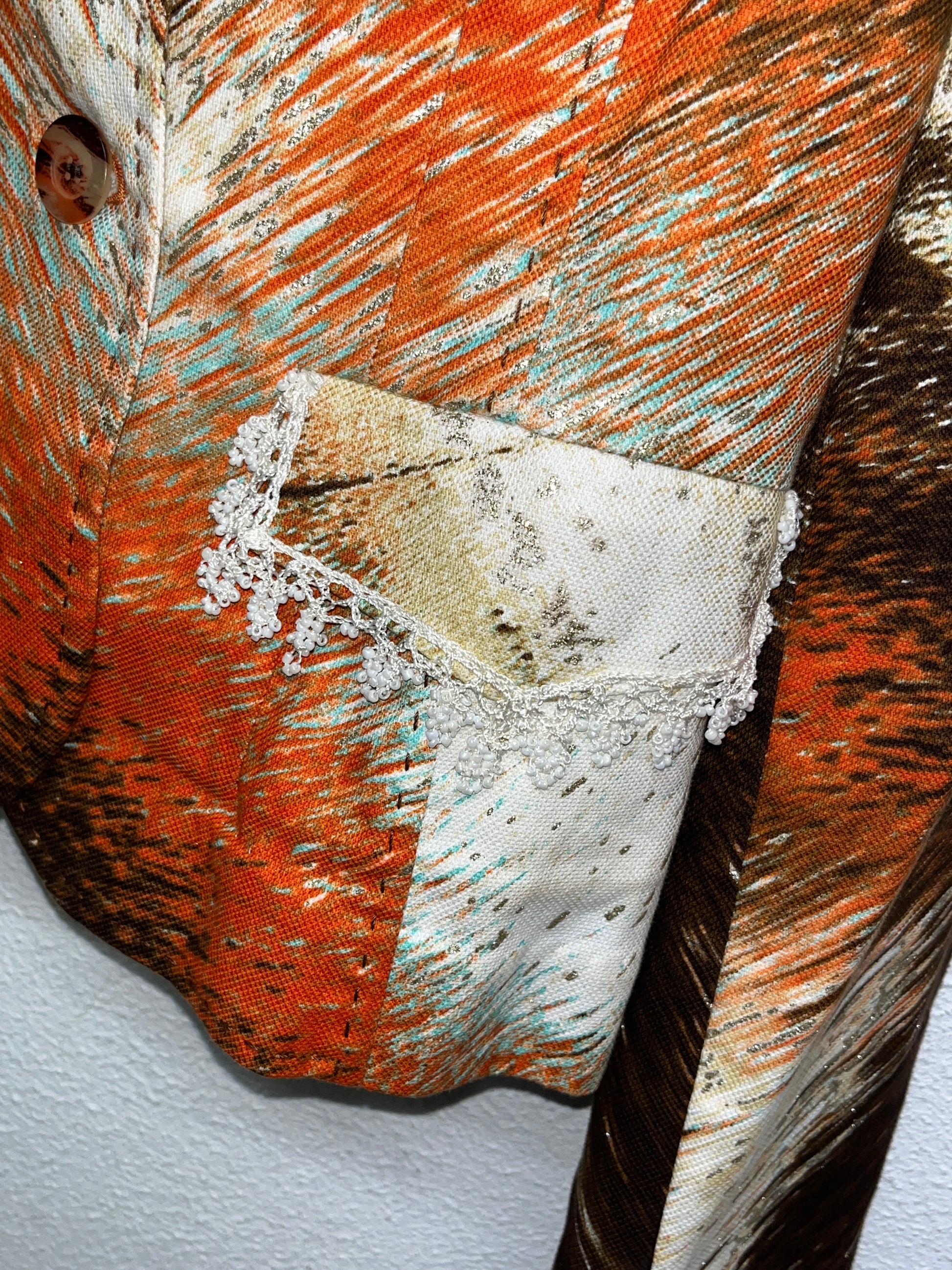 ROBERTO CAVALLI printed blazer with beads & lace detailing