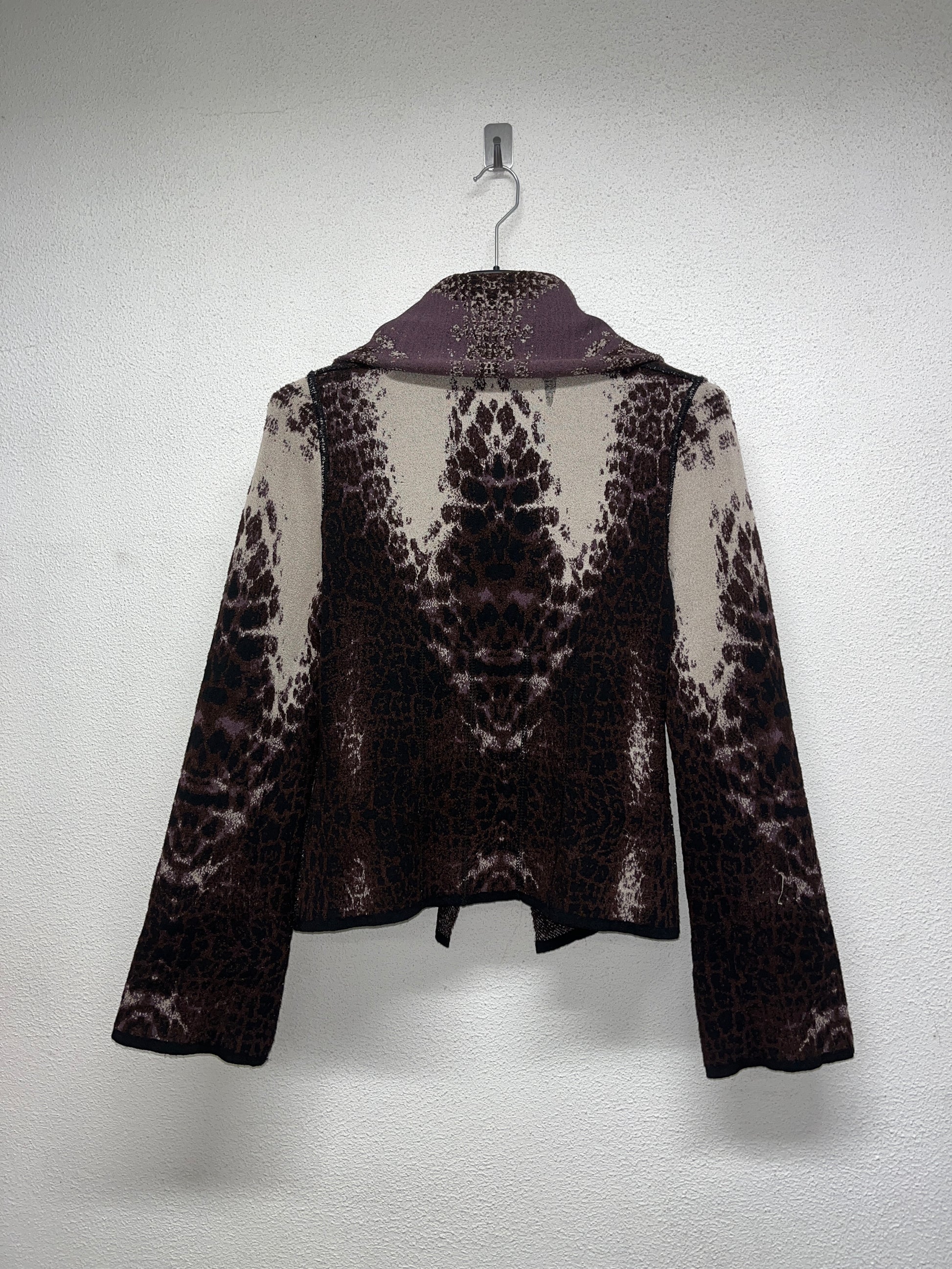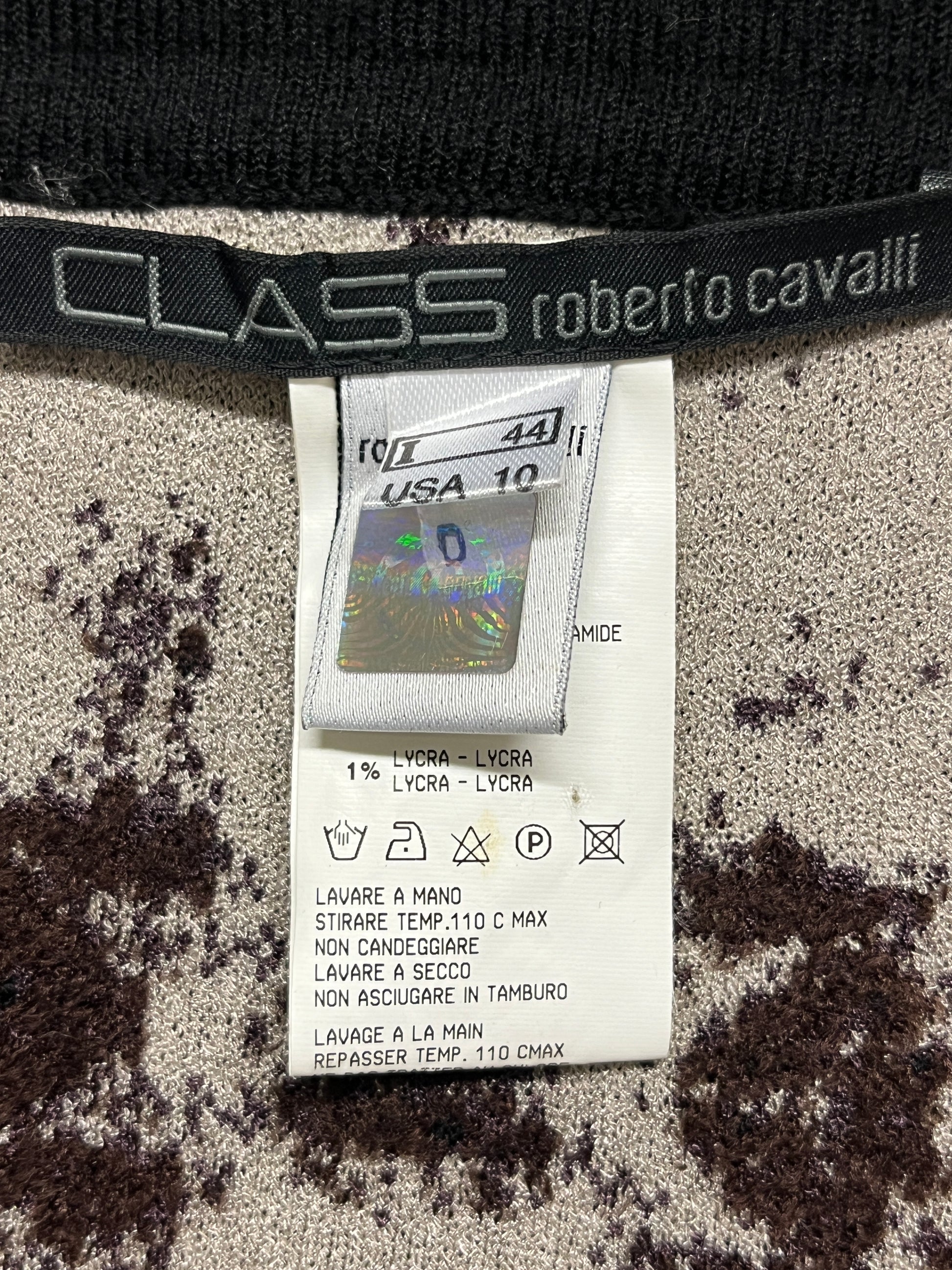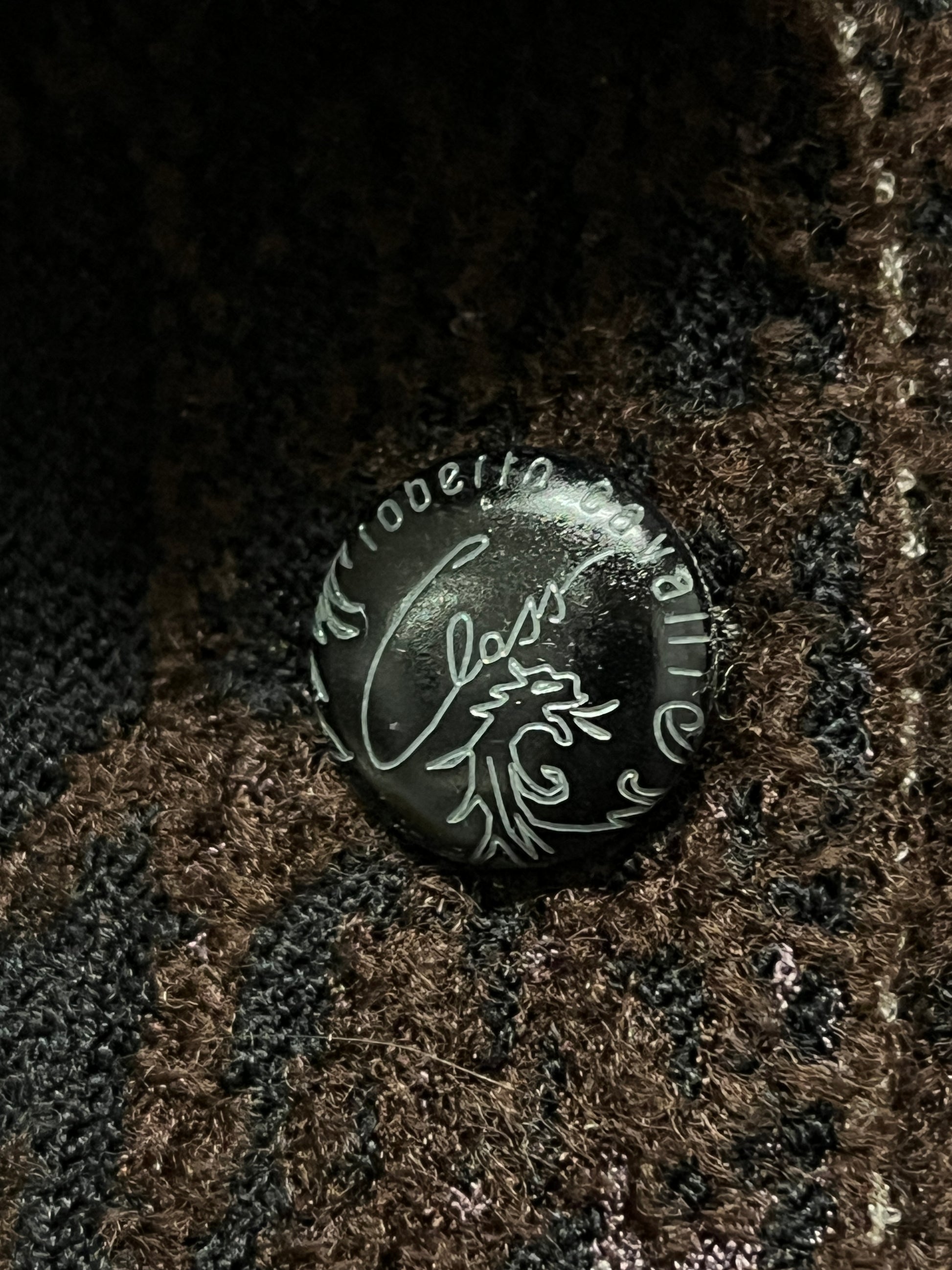 ROBERTO CAVALLI Class wool abstract brown twin Set, both pieces are reversible, small flaw as shown (it gets hidden by the collar)