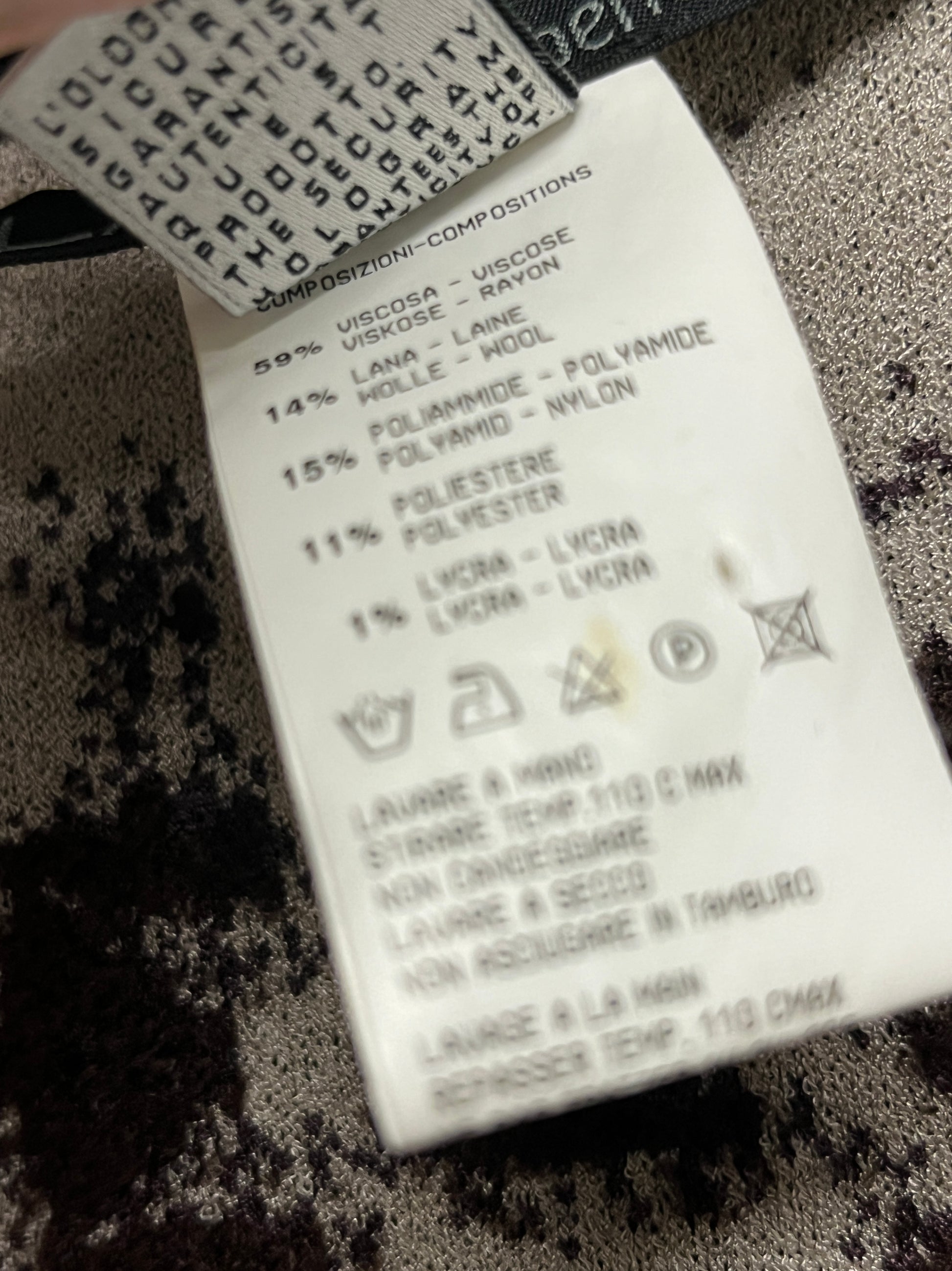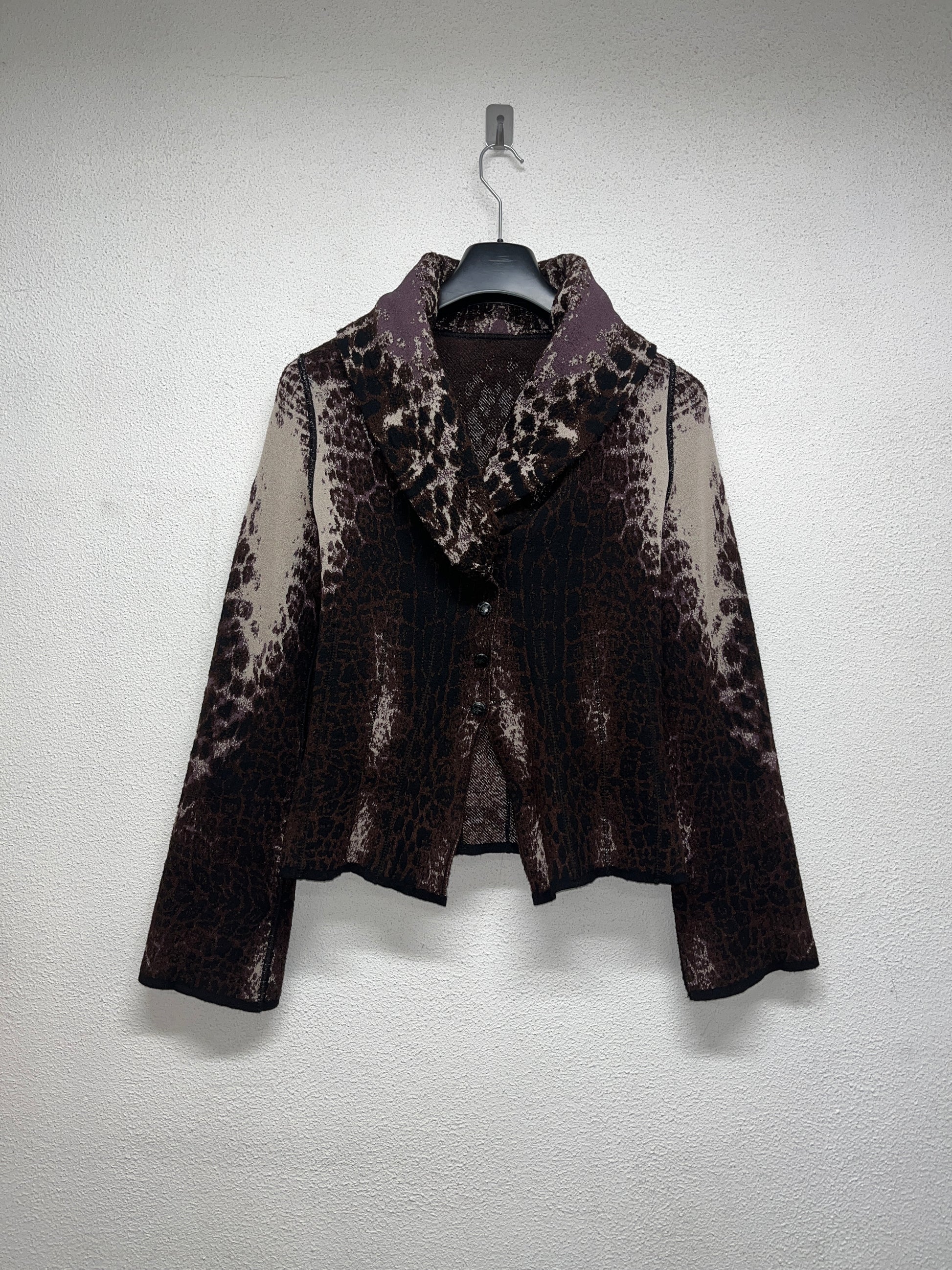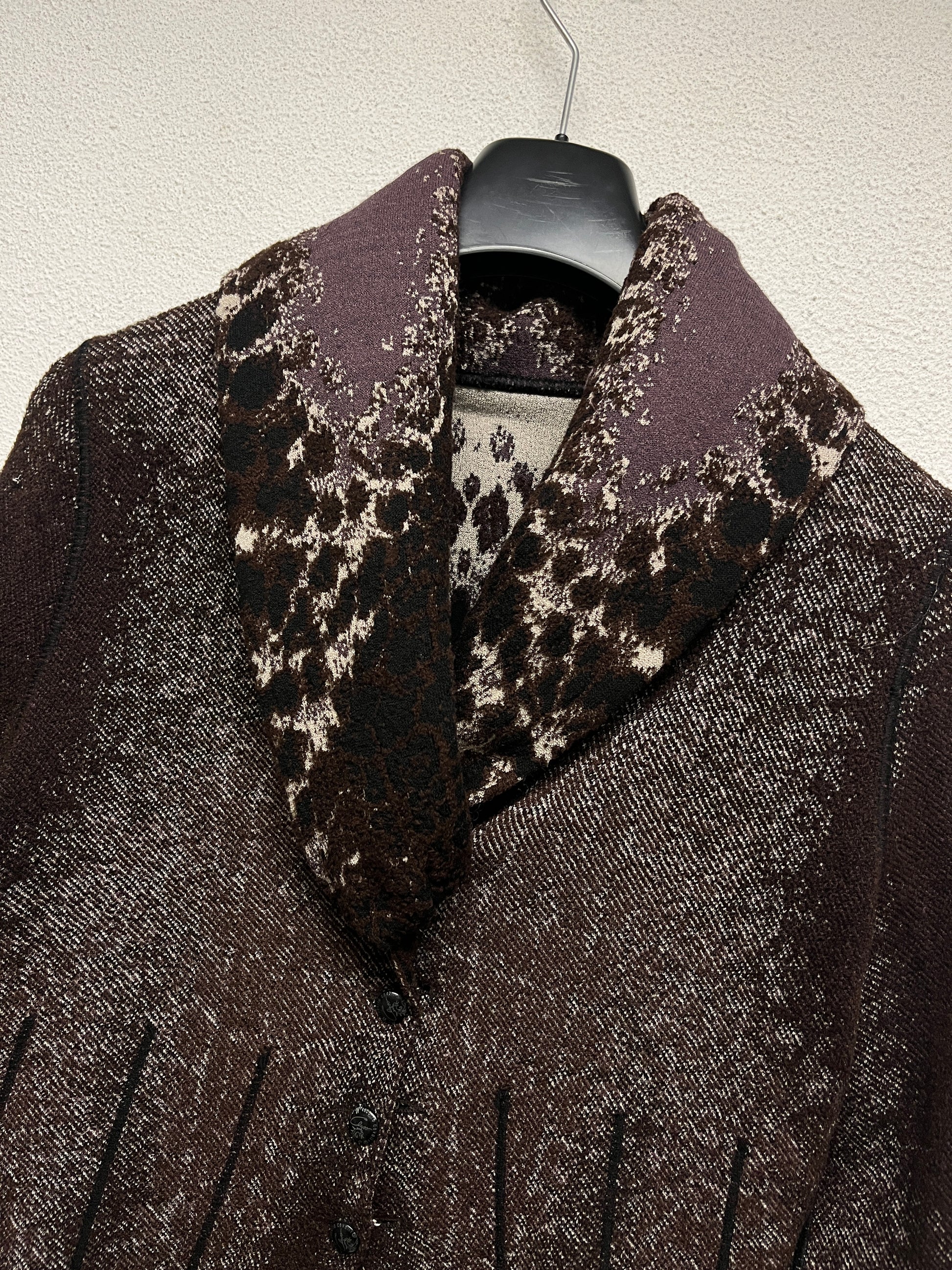 ROBERTO CAVALLI Class wool abstract brown twin Set, both pieces are reversible, small flaw as shown (it gets hidden by the collar)