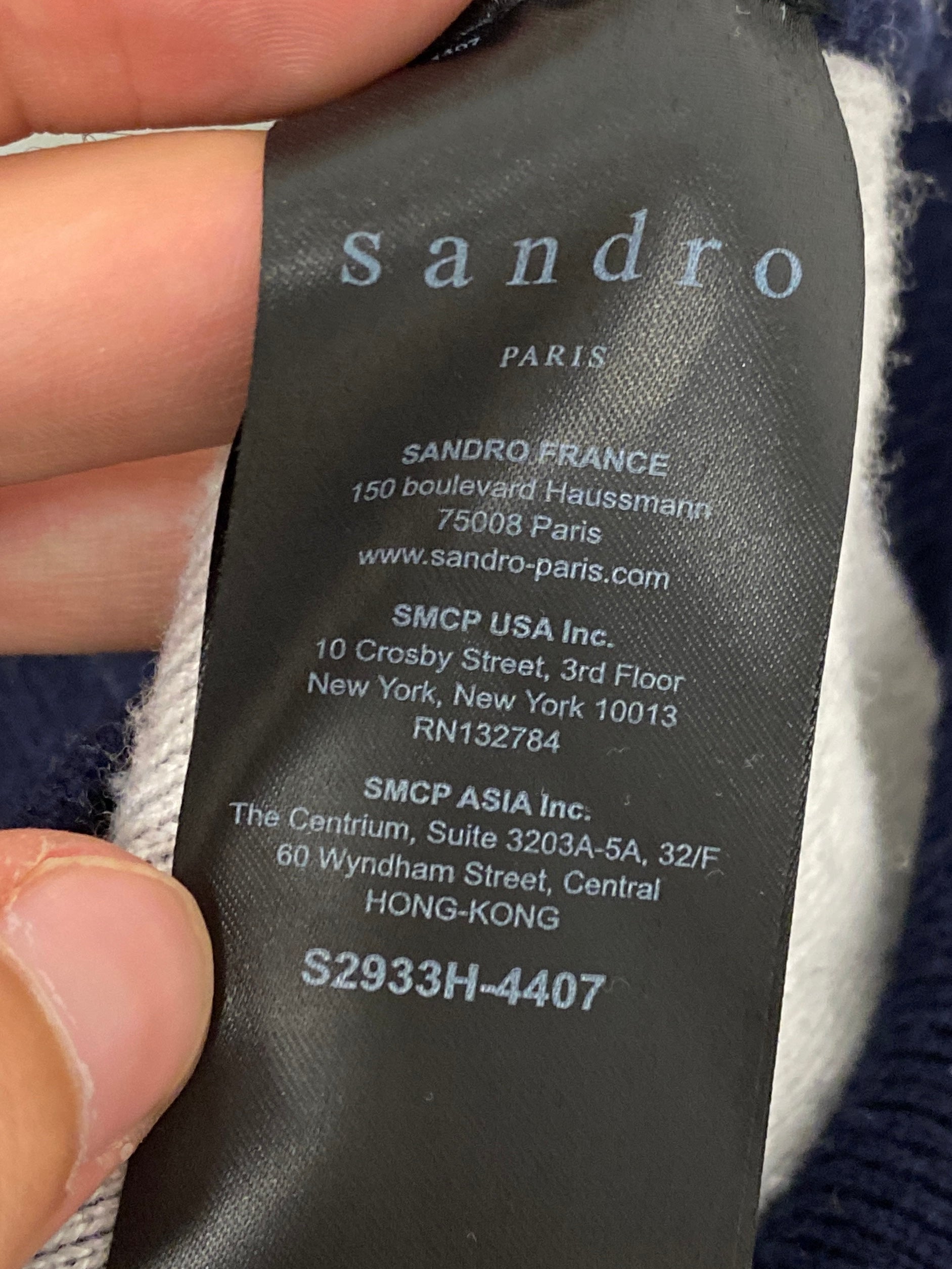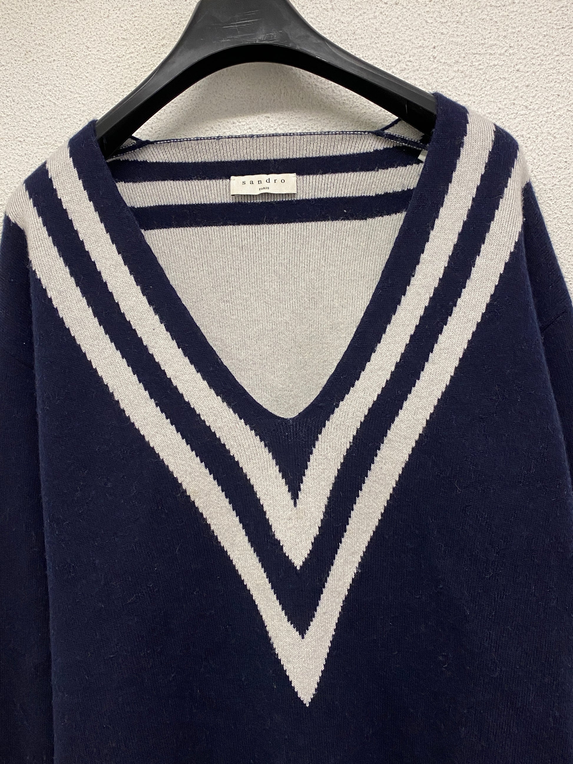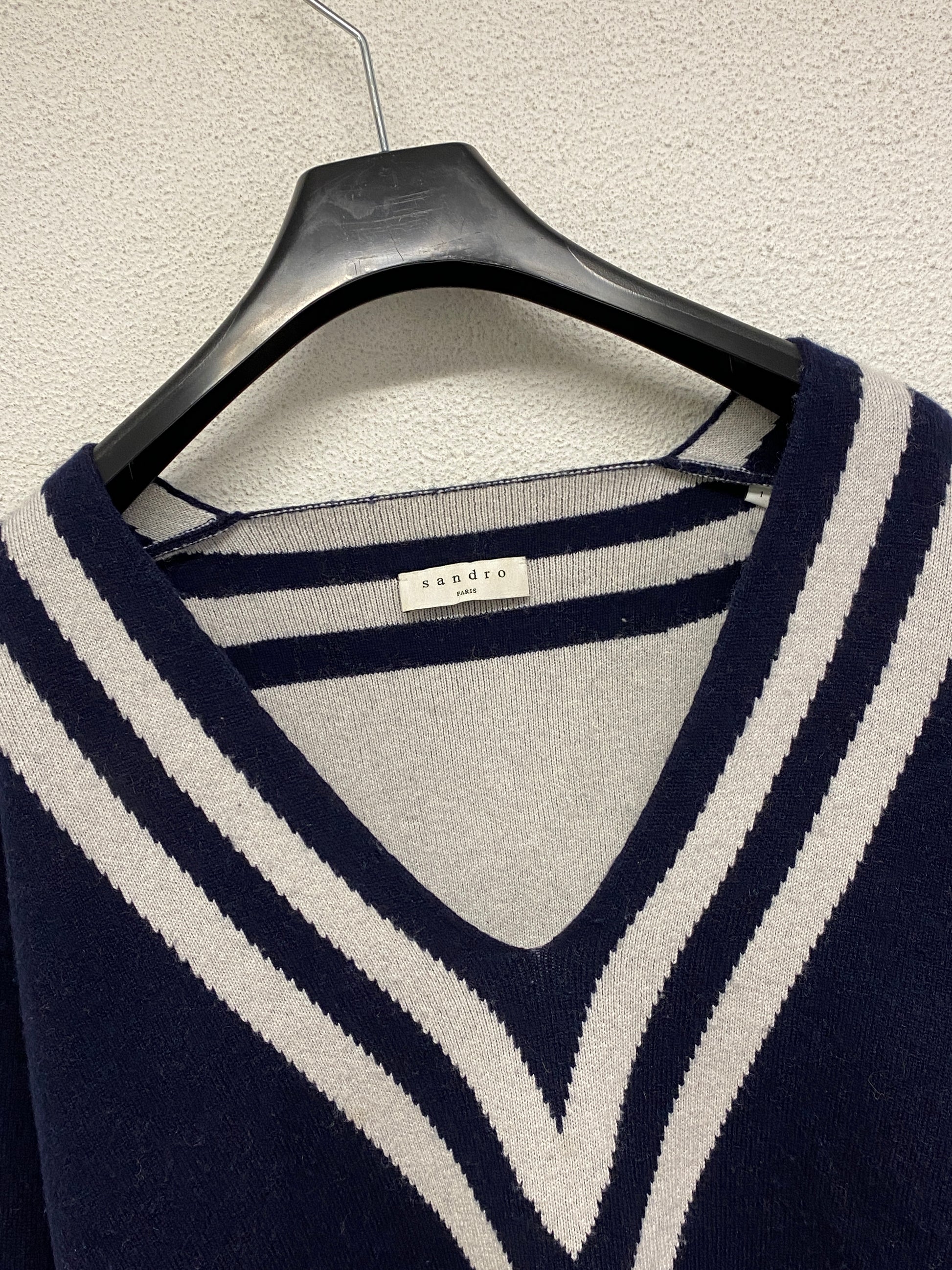 SANDRO sailor wool knit navy V-neck sweater (M)