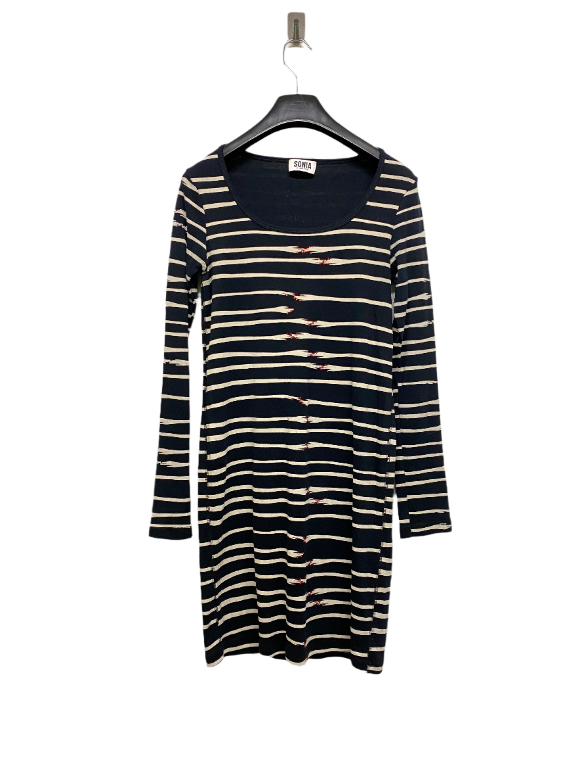 SONIA RYKIEL graphic & rhinestone longsleeve dress (M)