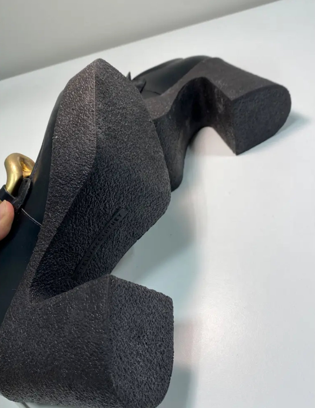 STELLA MCCARTNEY black leather skyla loafer low boots with gold and silver chunky chain