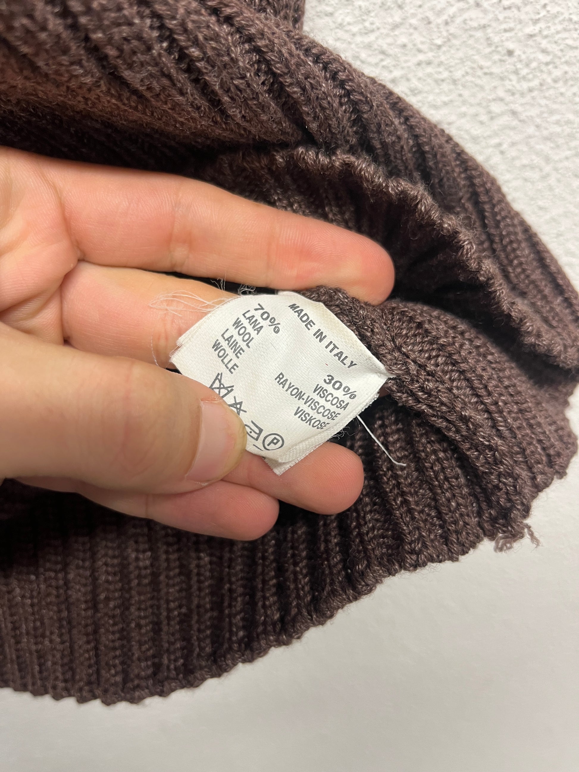 VALENTINO wool knit brown sleeveless top with genuine feather collar (S)