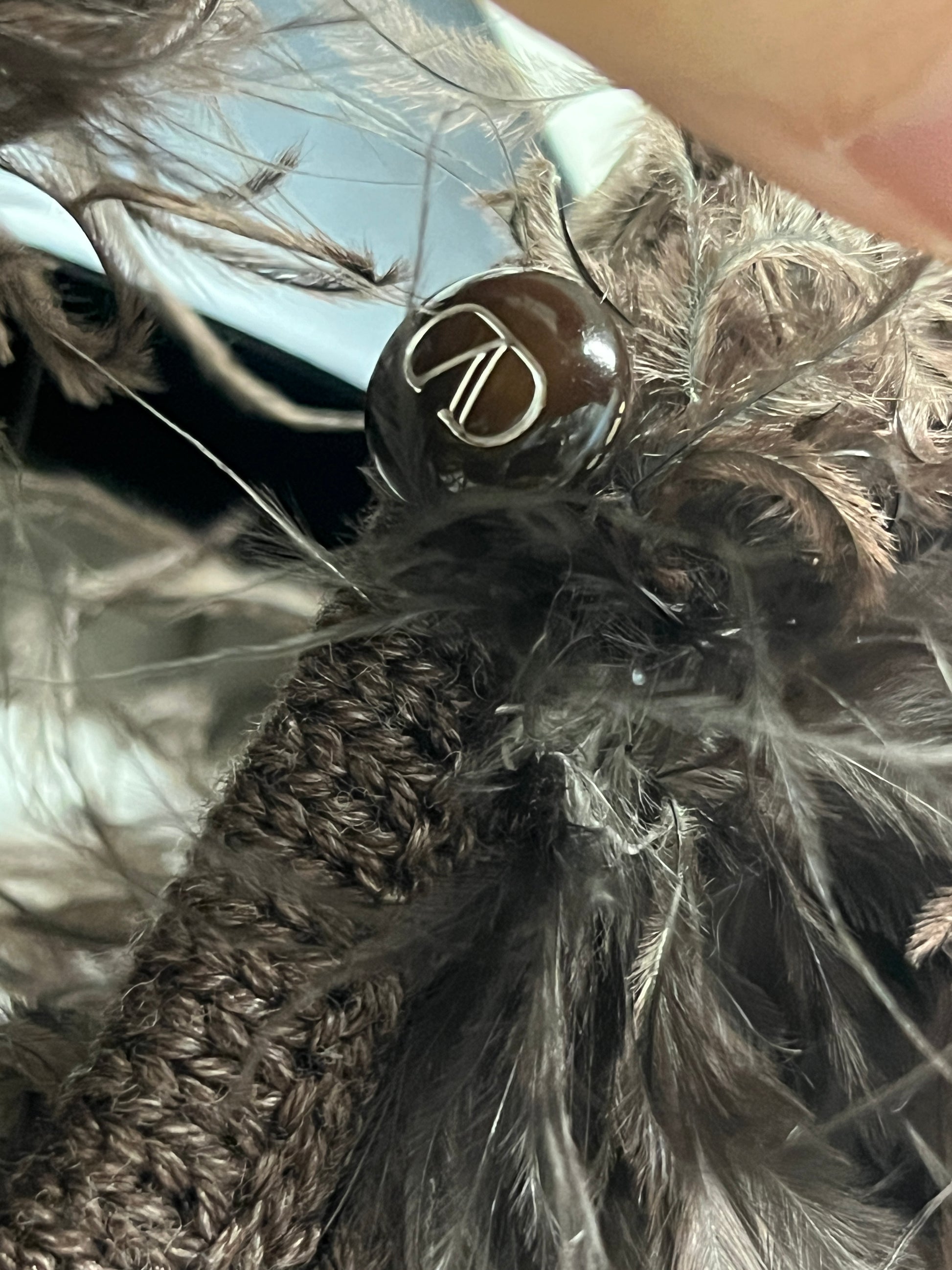 VALENTINO wool knit brown sleeveless top with genuine feather collar