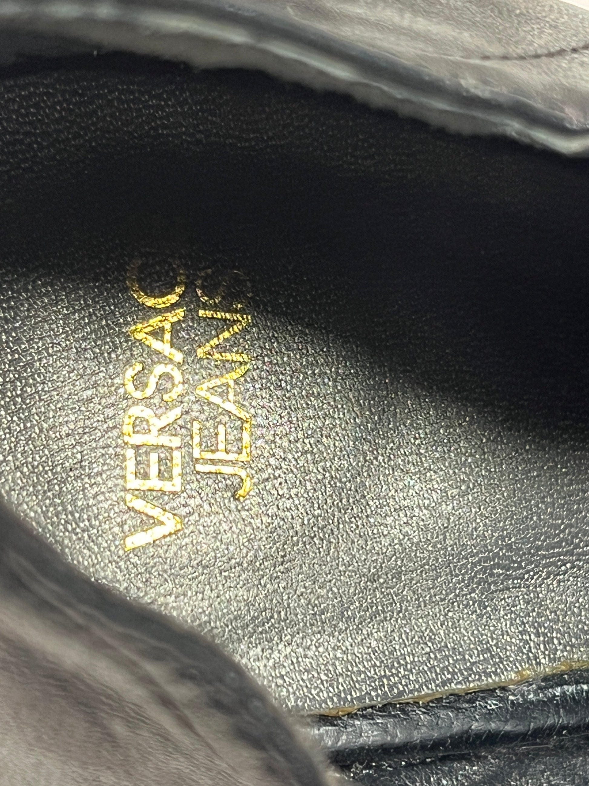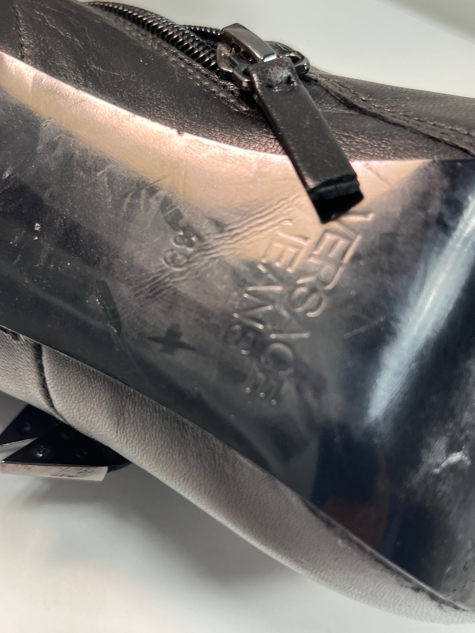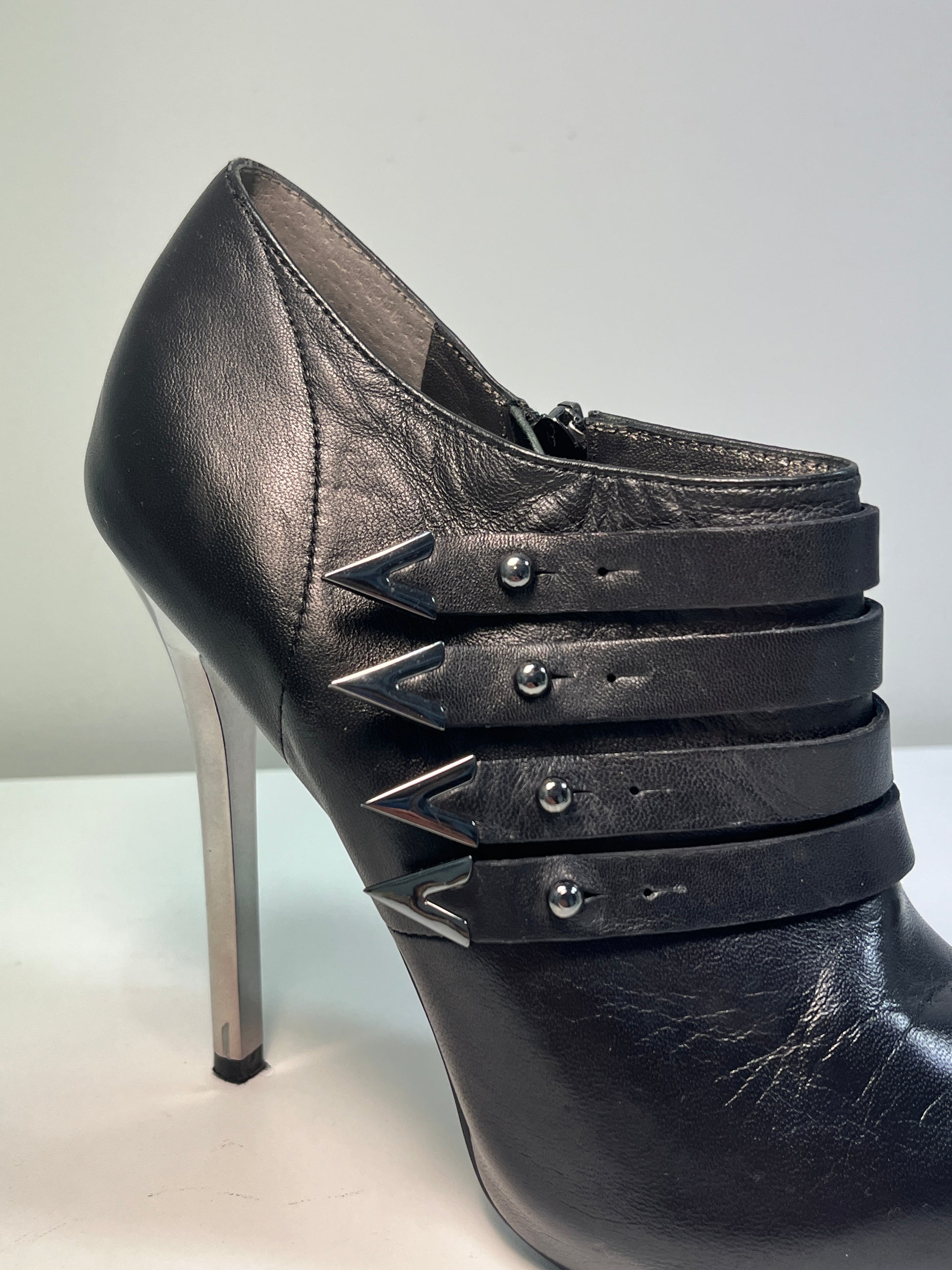 VERSACE Jeans Couture black leather chromed belted stiletto boots heels (39)