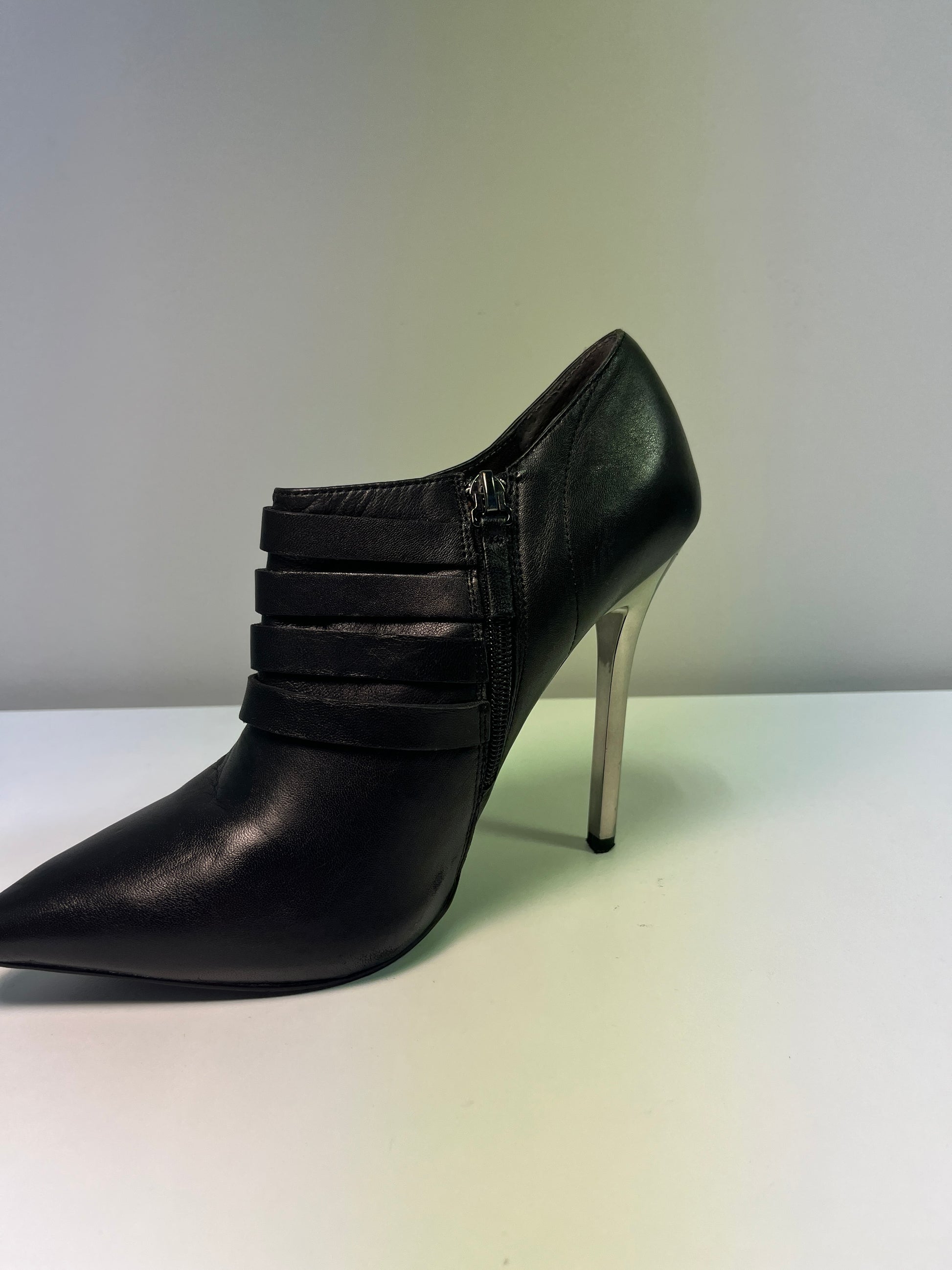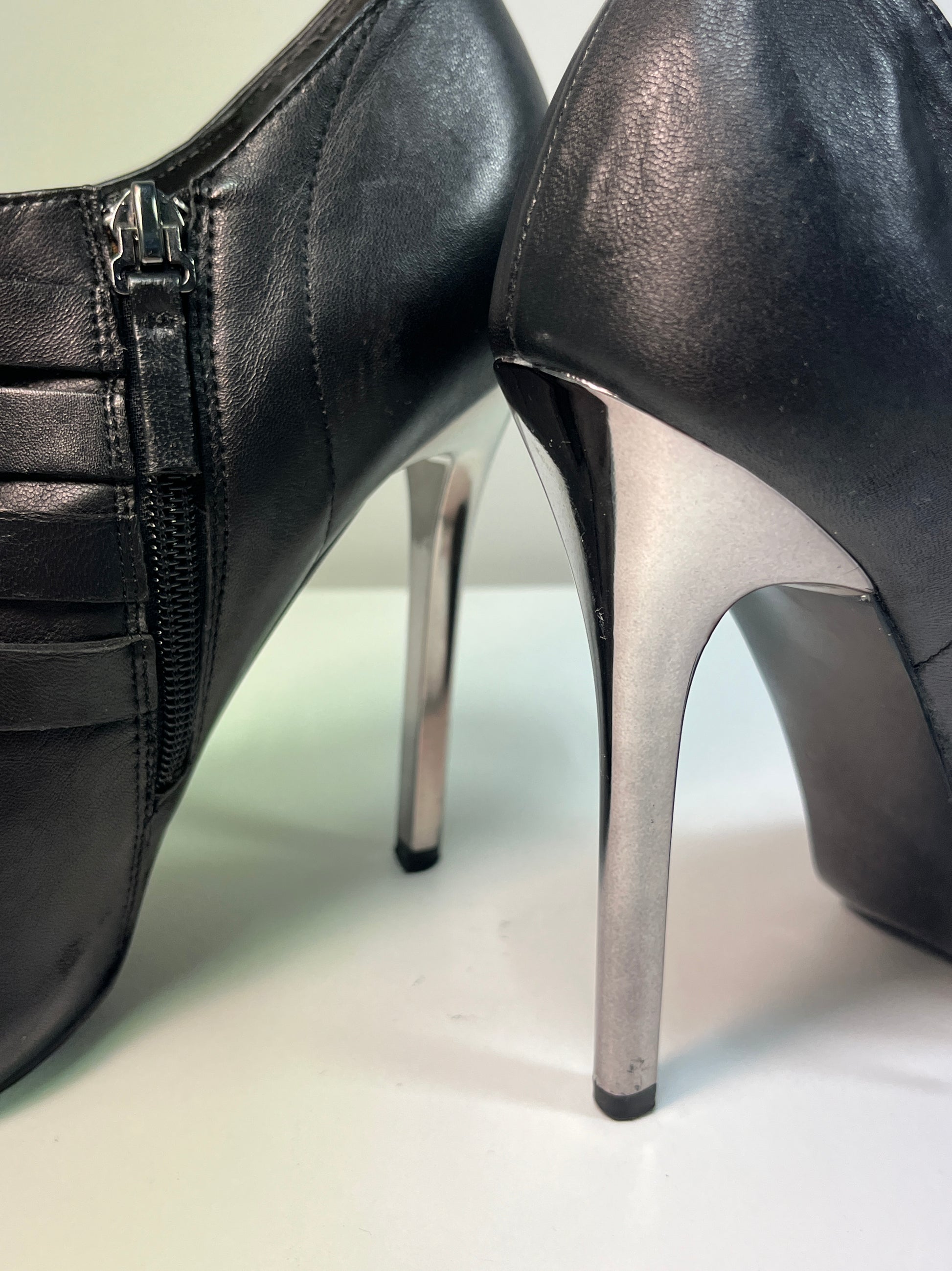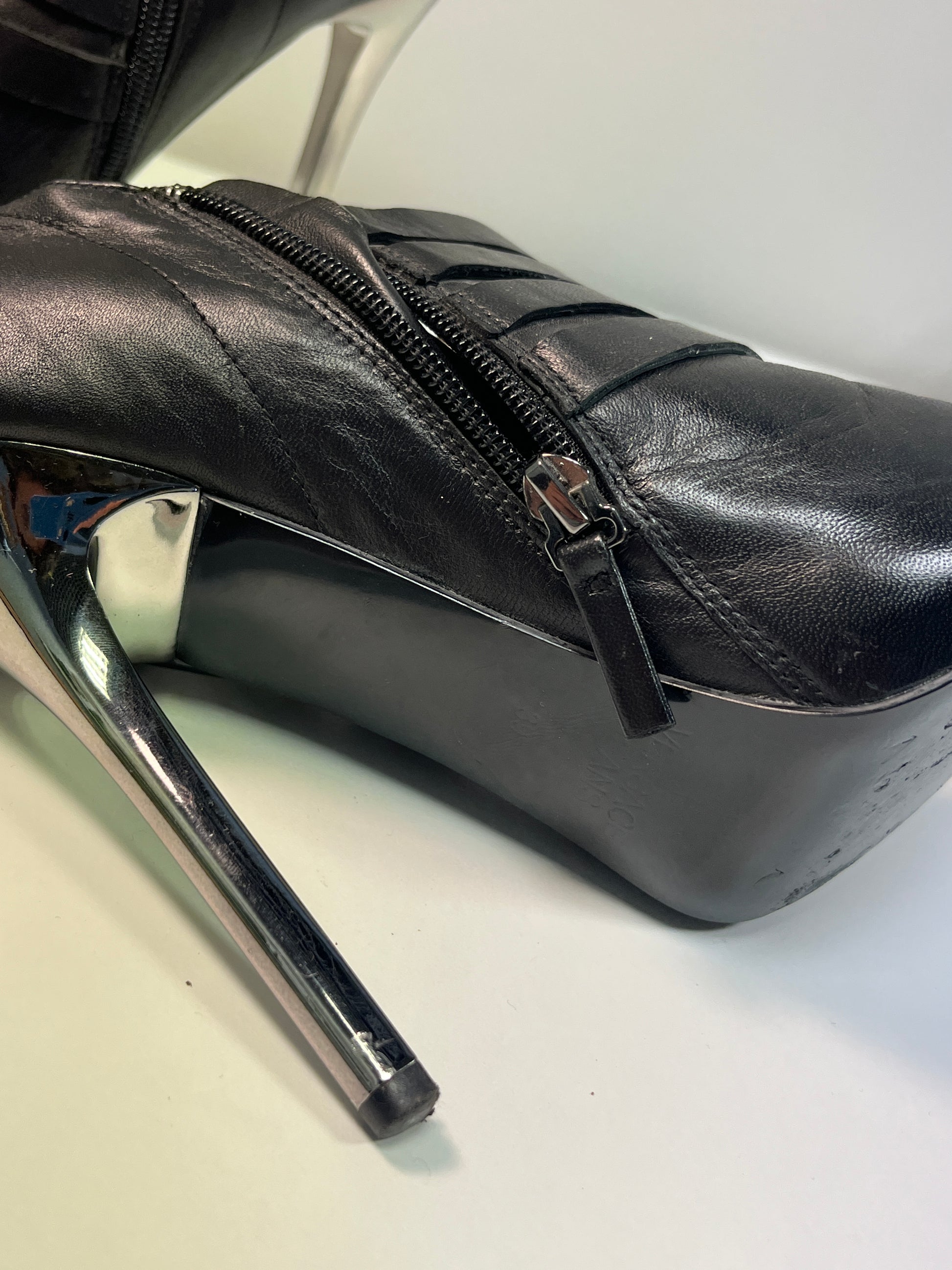 VERSACE Jeans Couture black leather chromed belted stiletto boots heels (39)