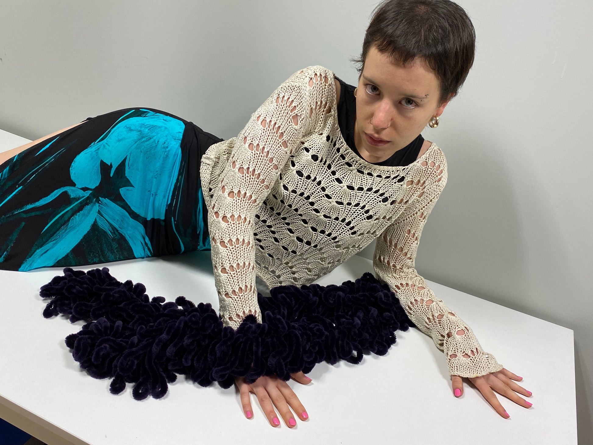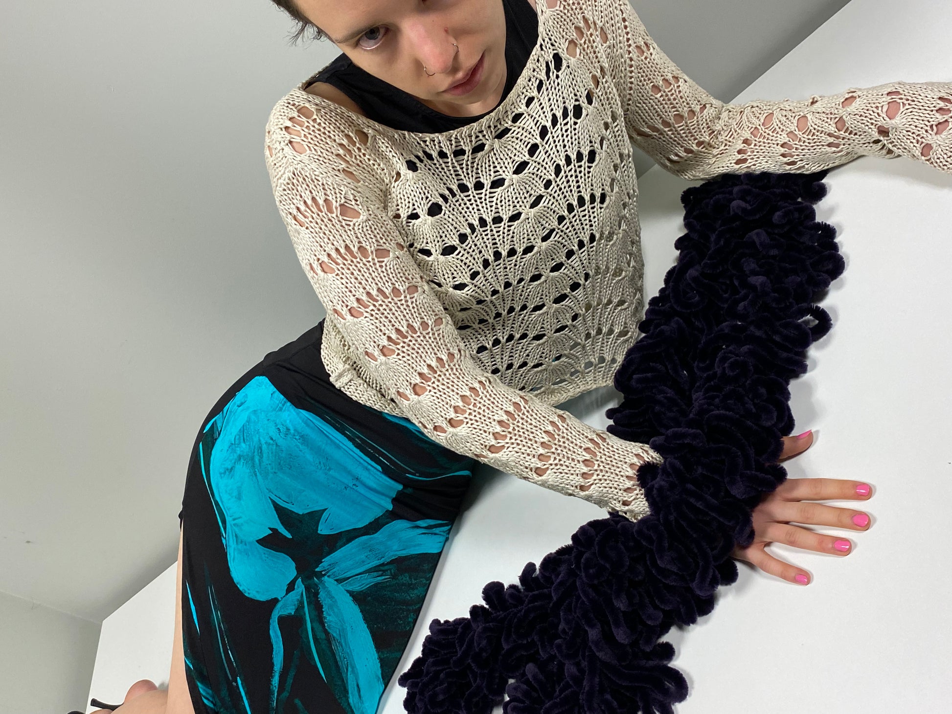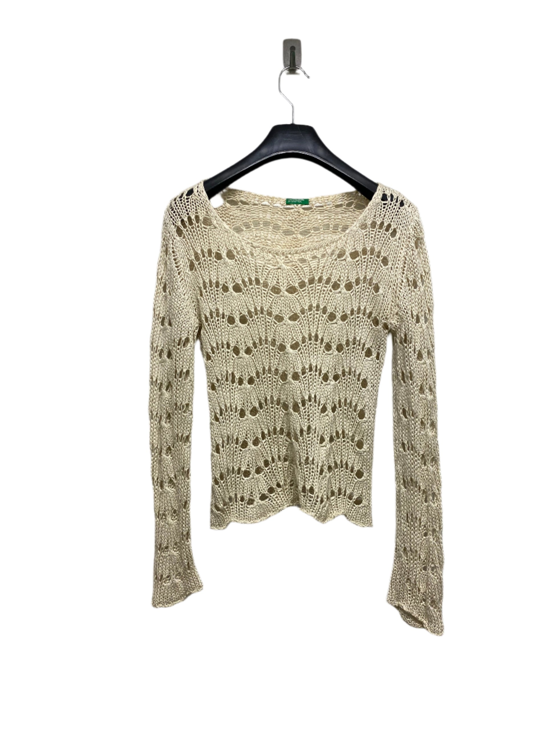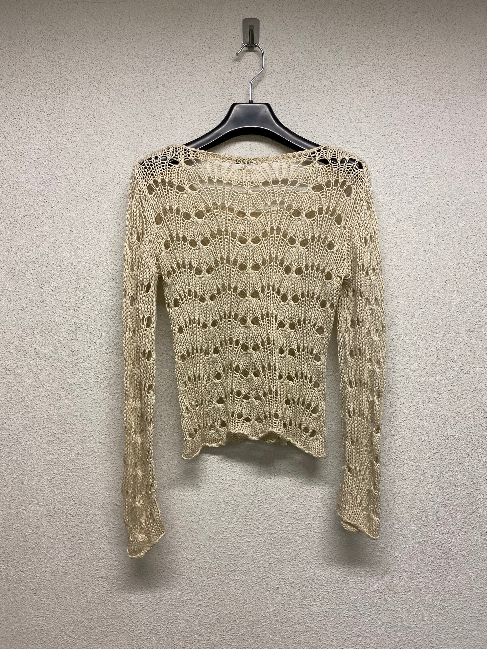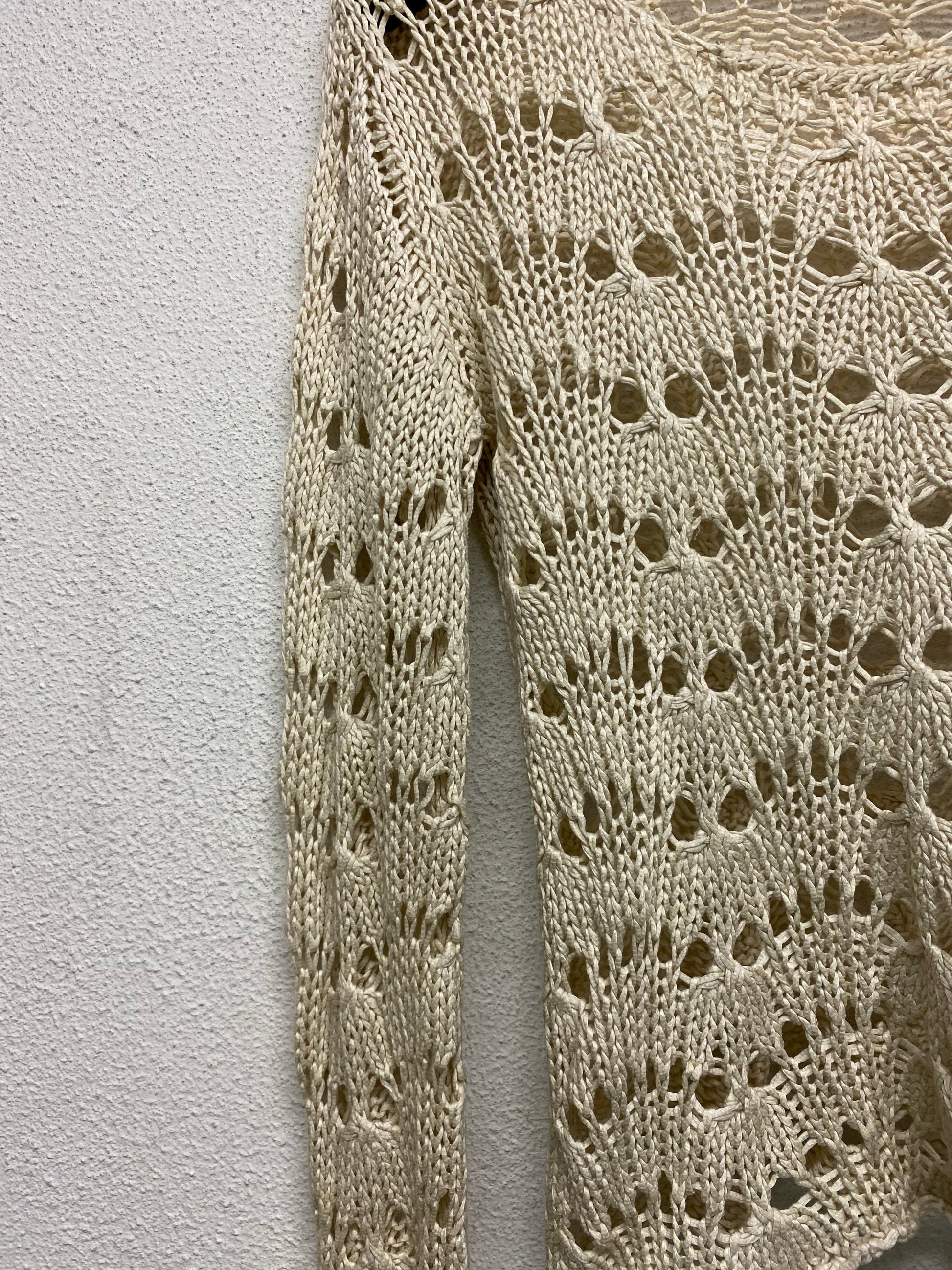 VINTAGE crochet beige long sleeve wide neck top (S/M)