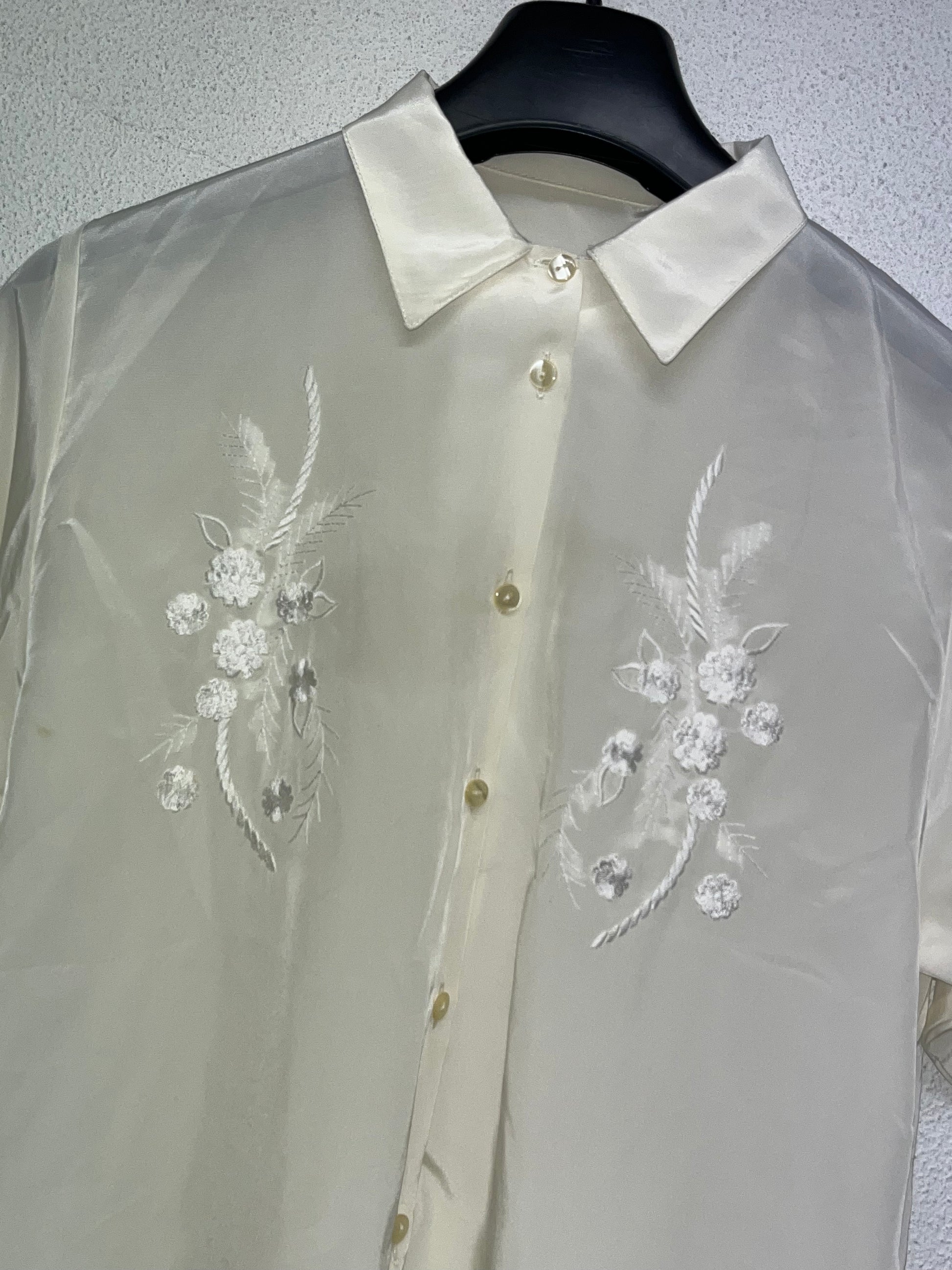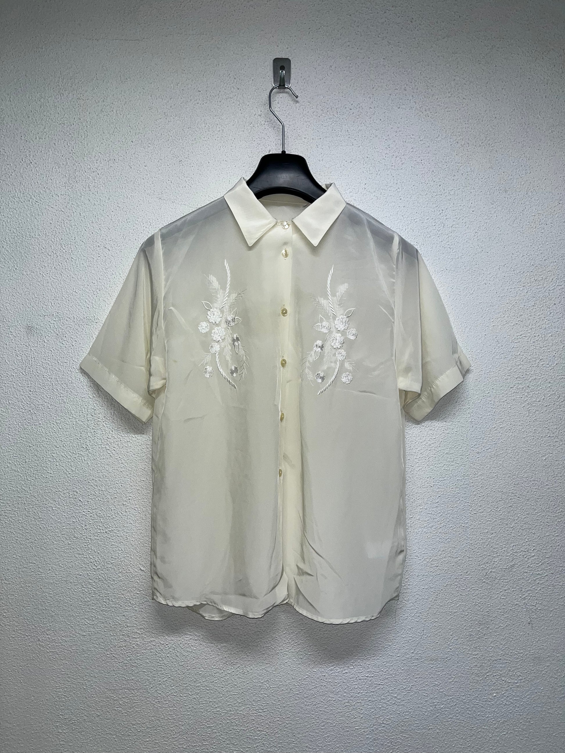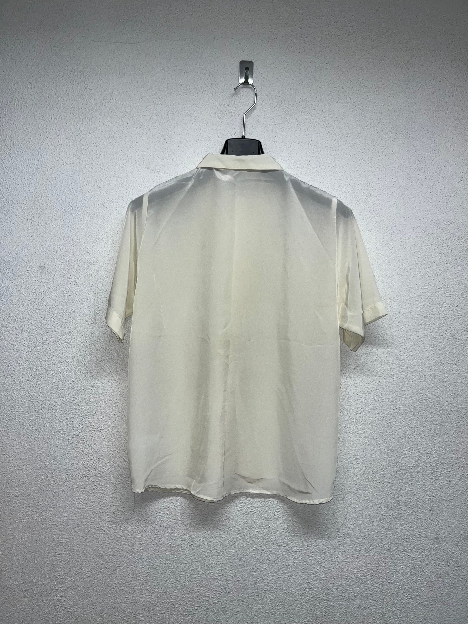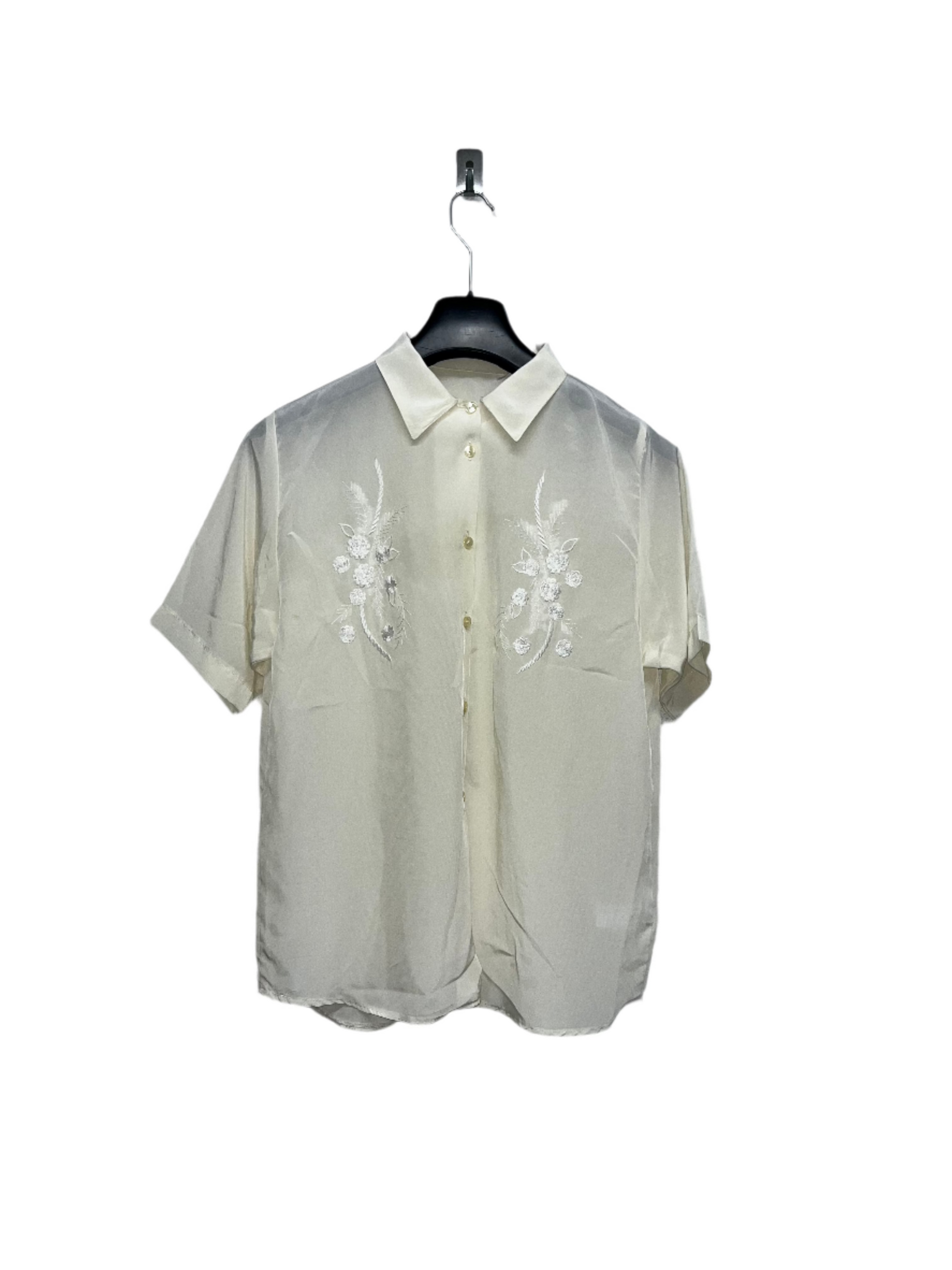 VINTAGE cream embroidery silk short sleeve button-up shirt