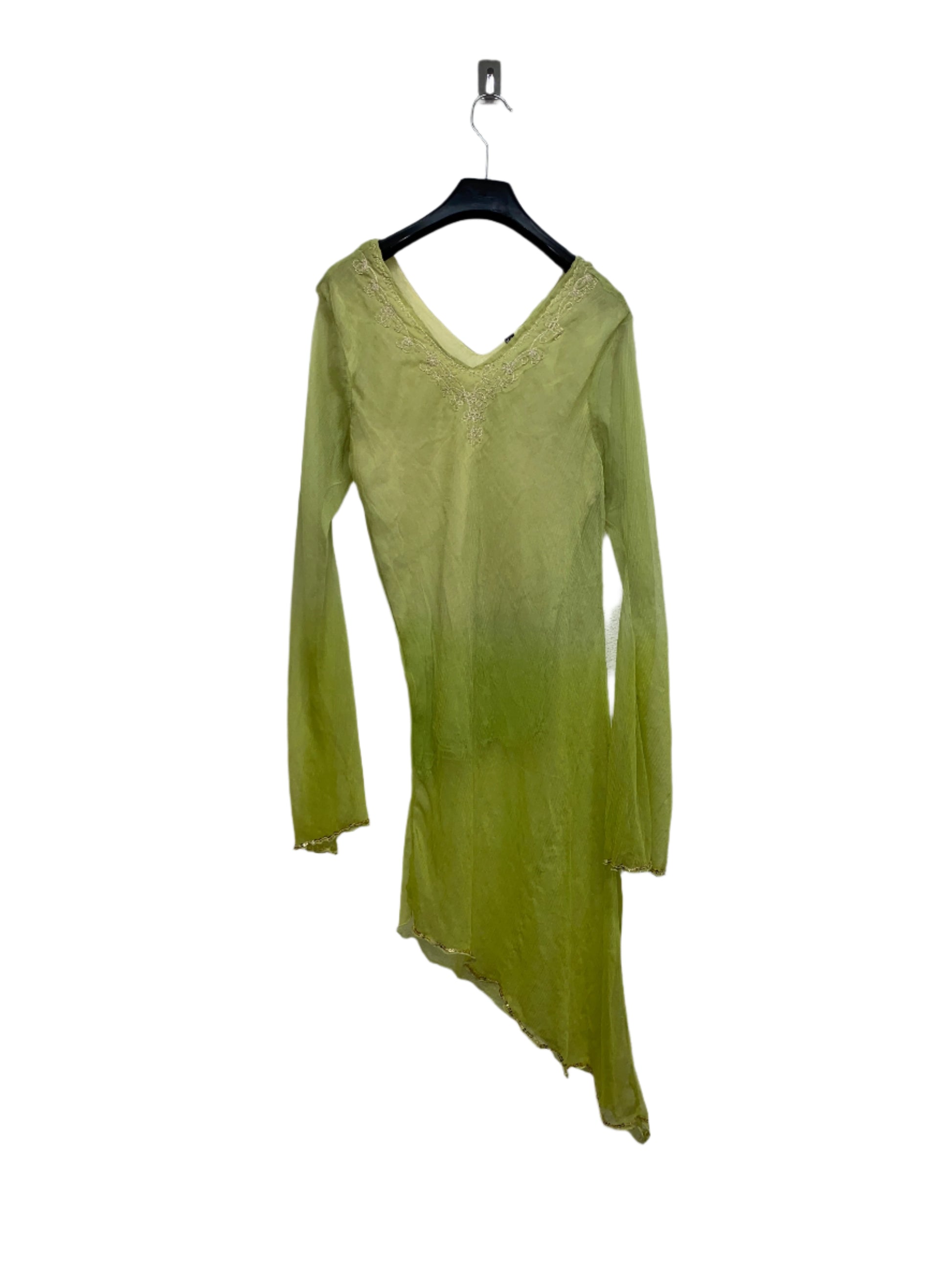 VINTAGE green asymmetrical see-through long tail top / dress (can be worn as a long top or dress)