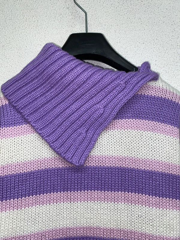 VINTAGE oversized collar knit sweater with buttoned sleeves (M)