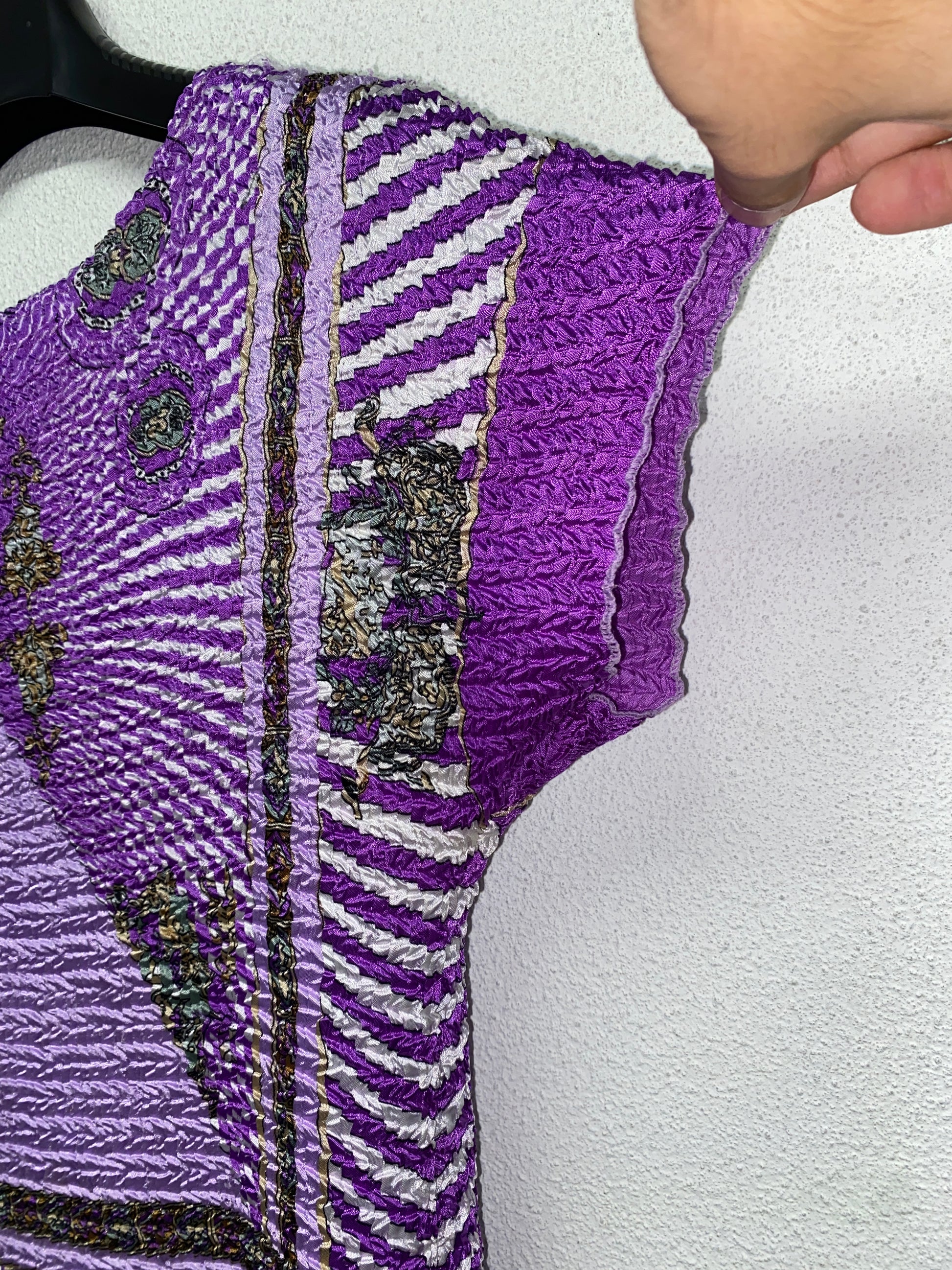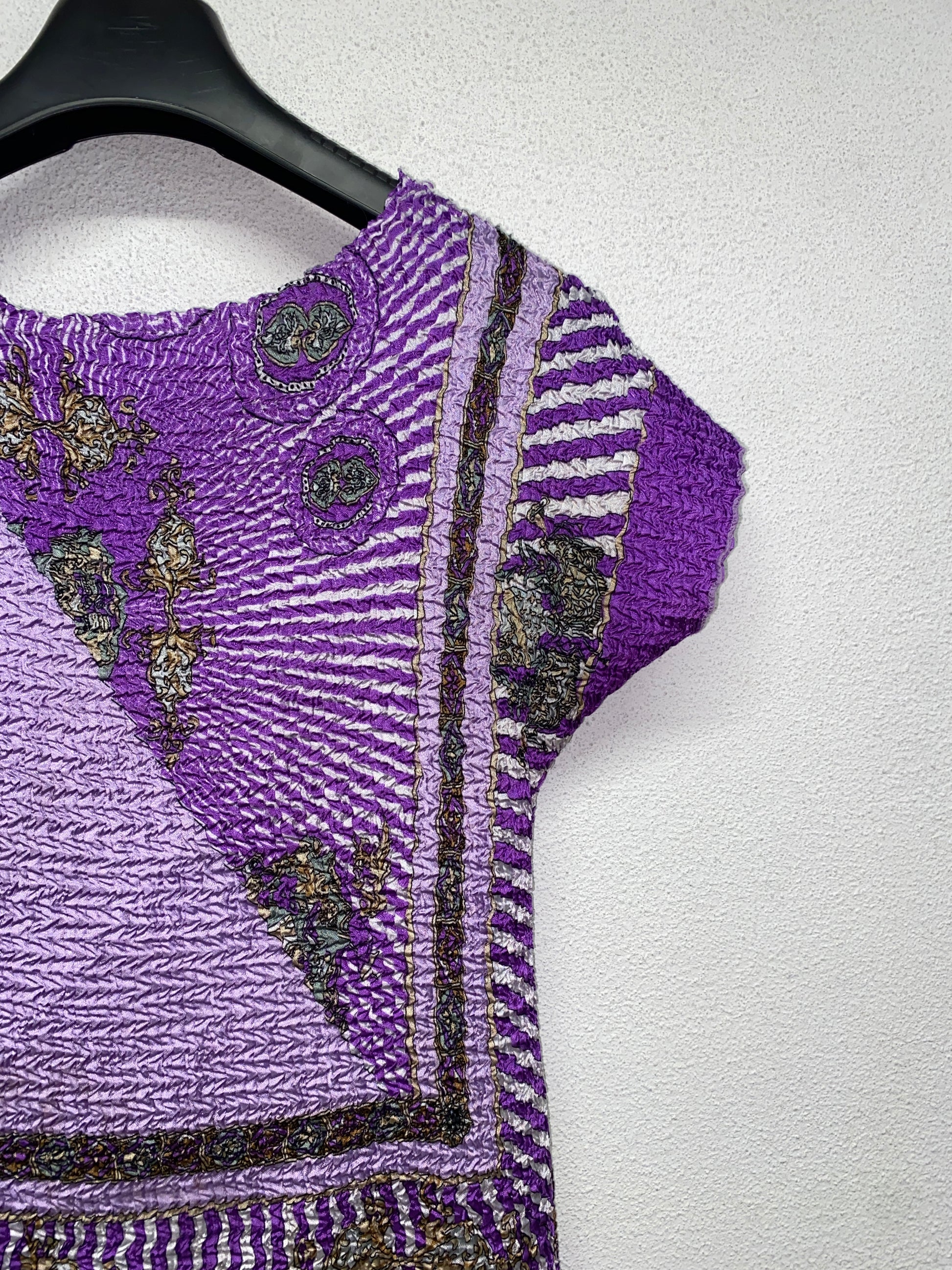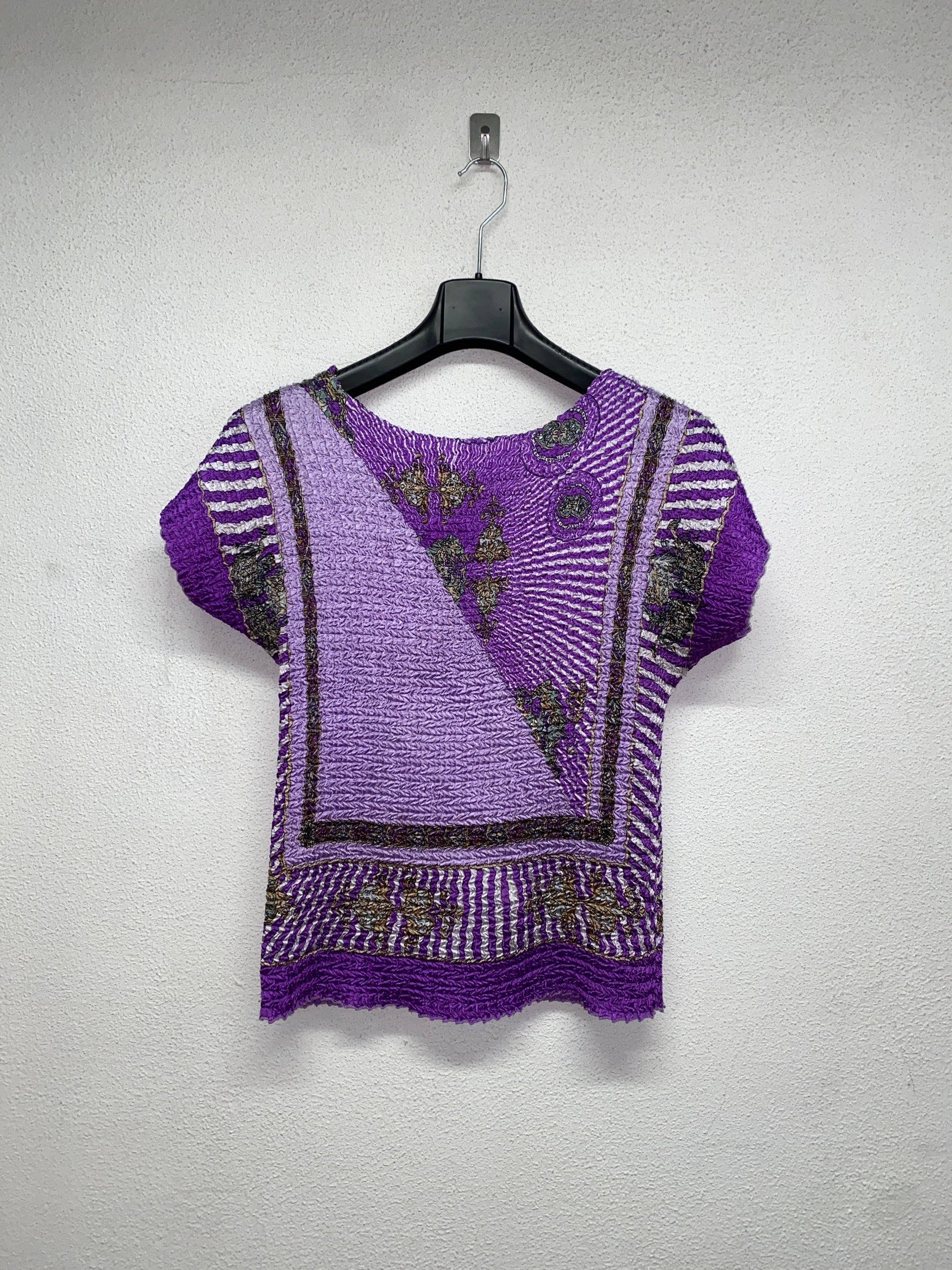 VINTAGE pleated ("pleats please" style) purple pattern top