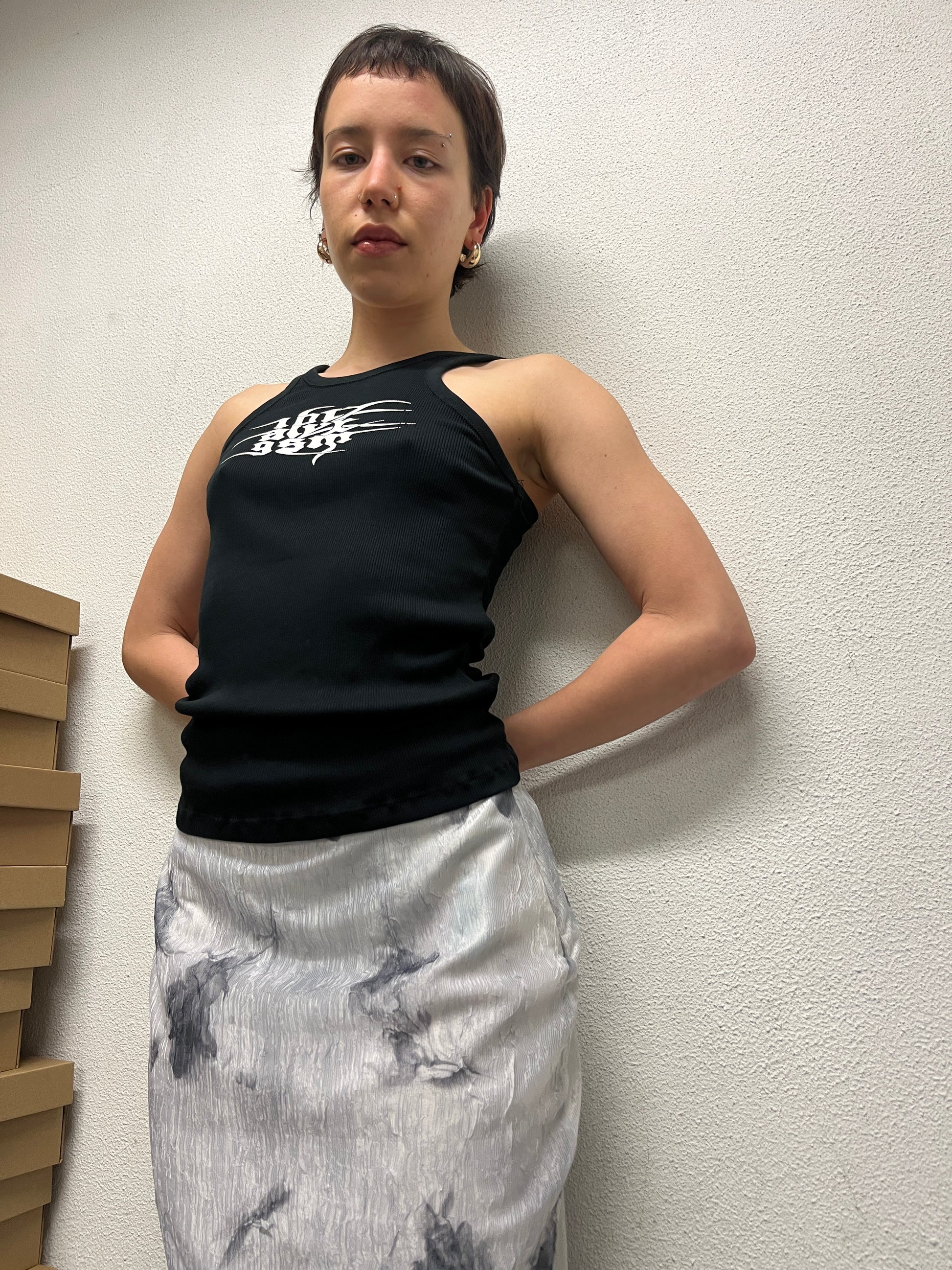 VINTAGE silk-like abstract skirt