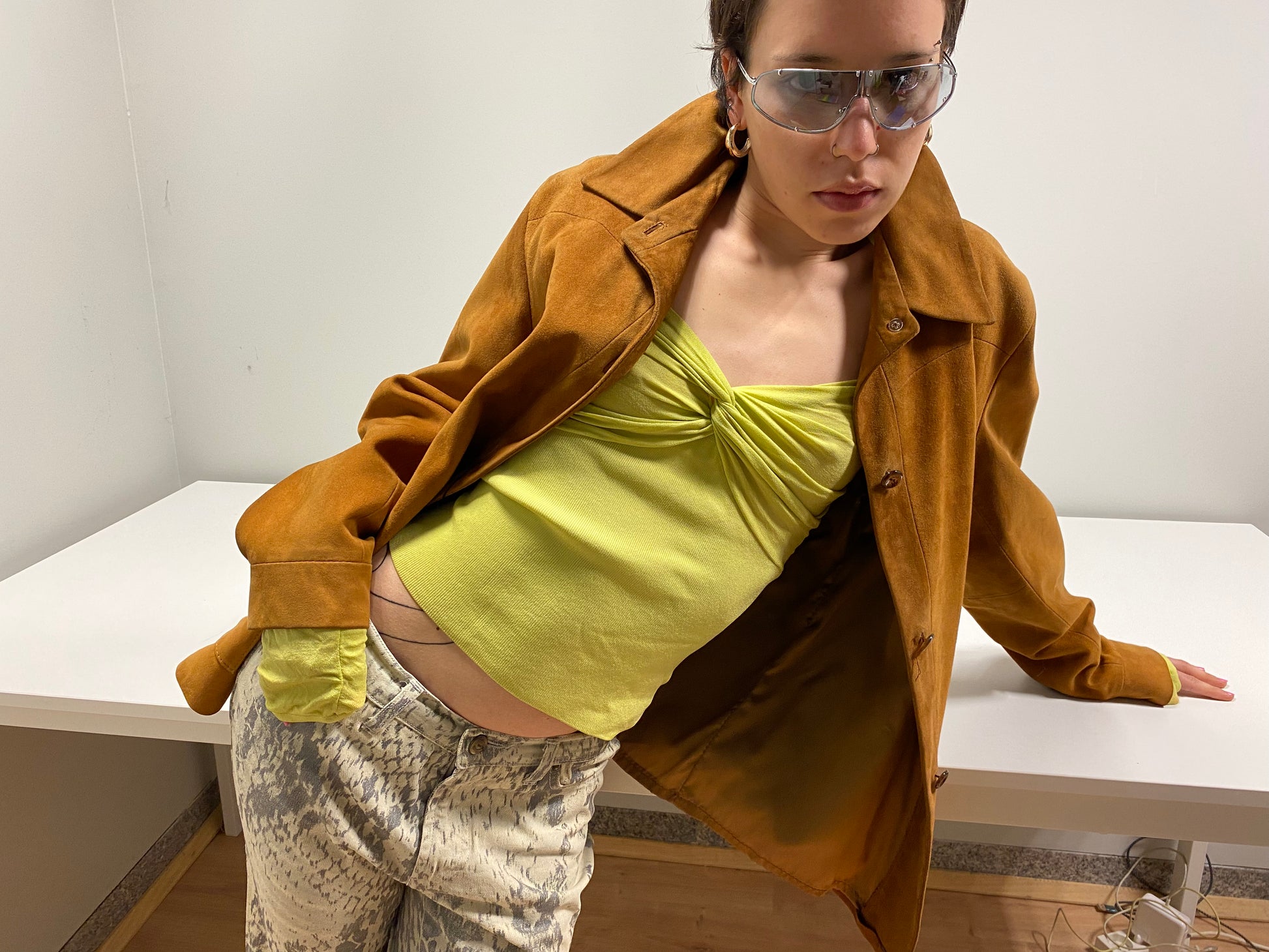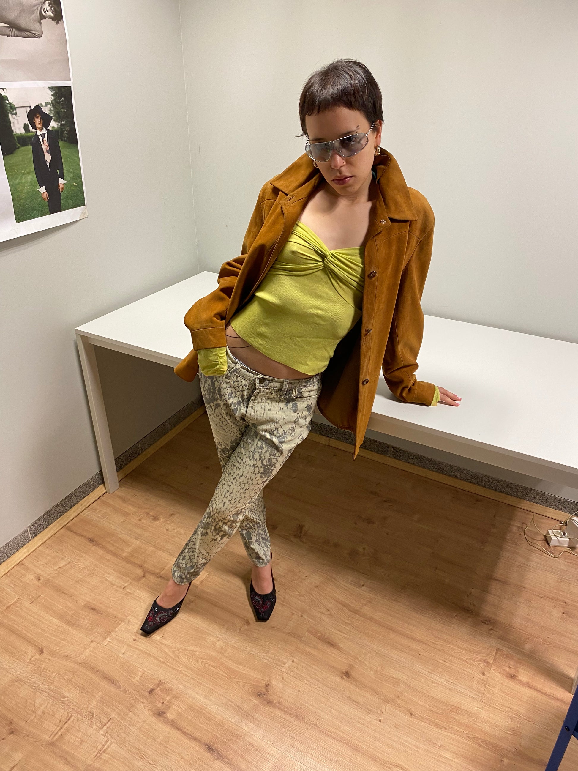 VINTAGE suede leather brown jacket