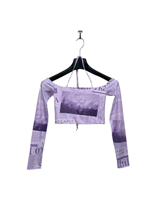 VINTAGE y2k newspaper print open shoulder top