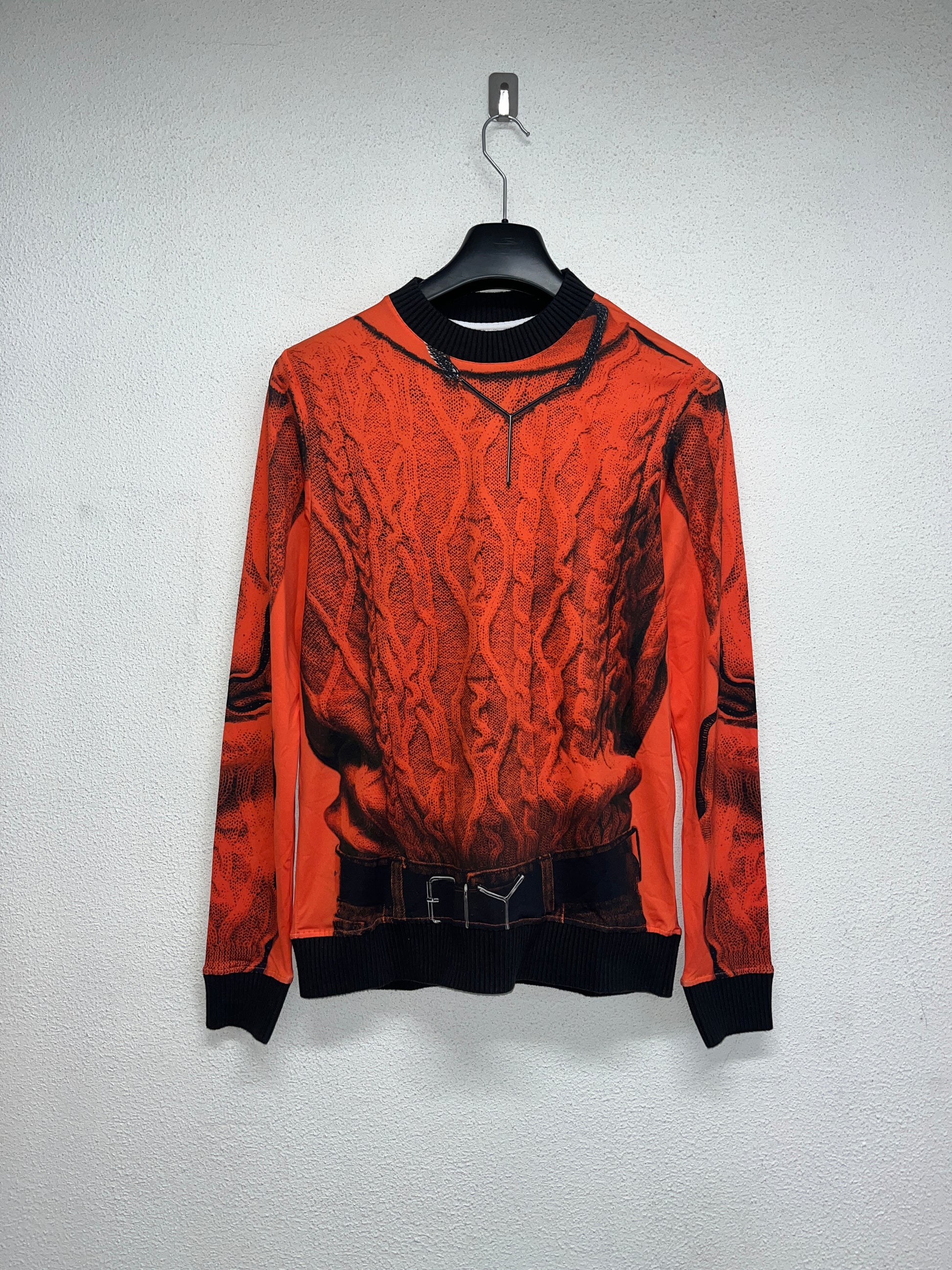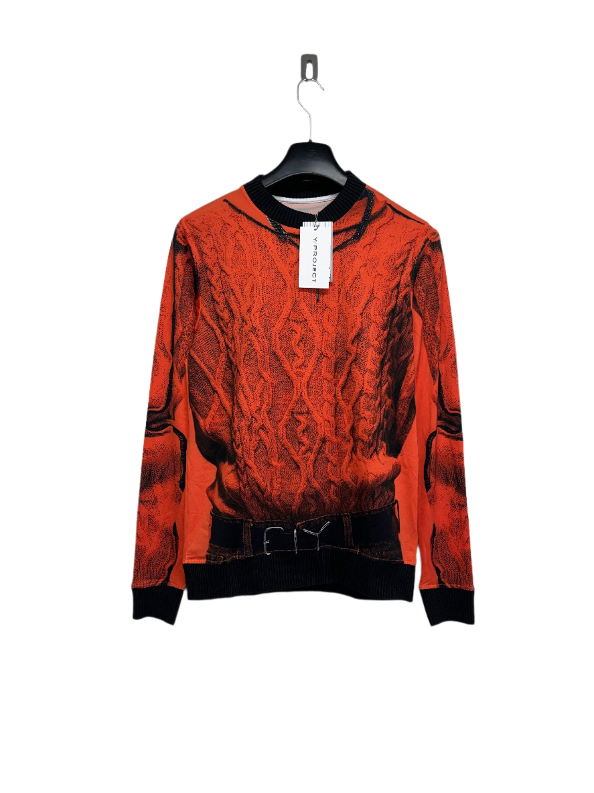 Y/PROJECT x JEAN PAUL GAULTIER red printed cable knit longsleeve