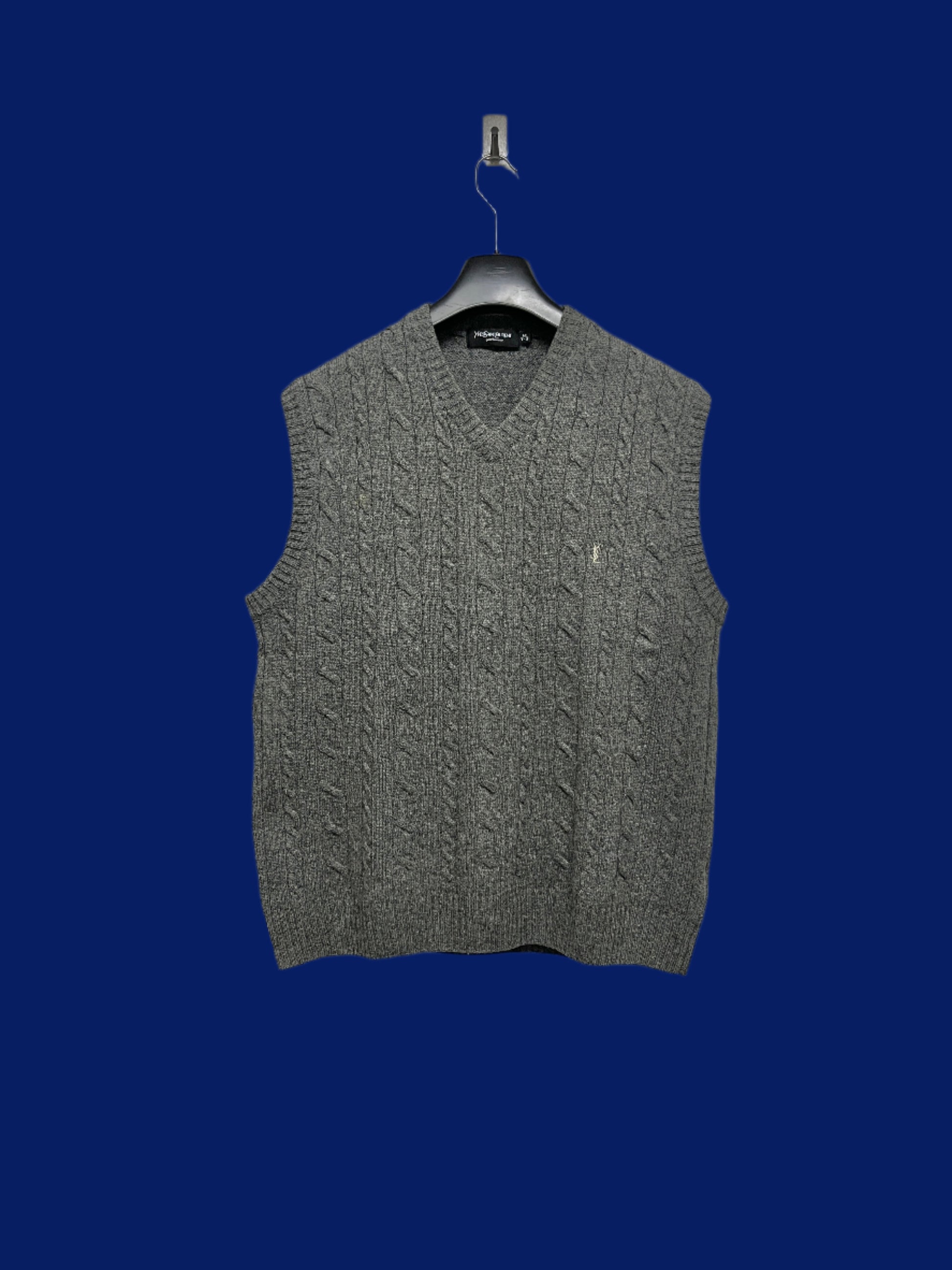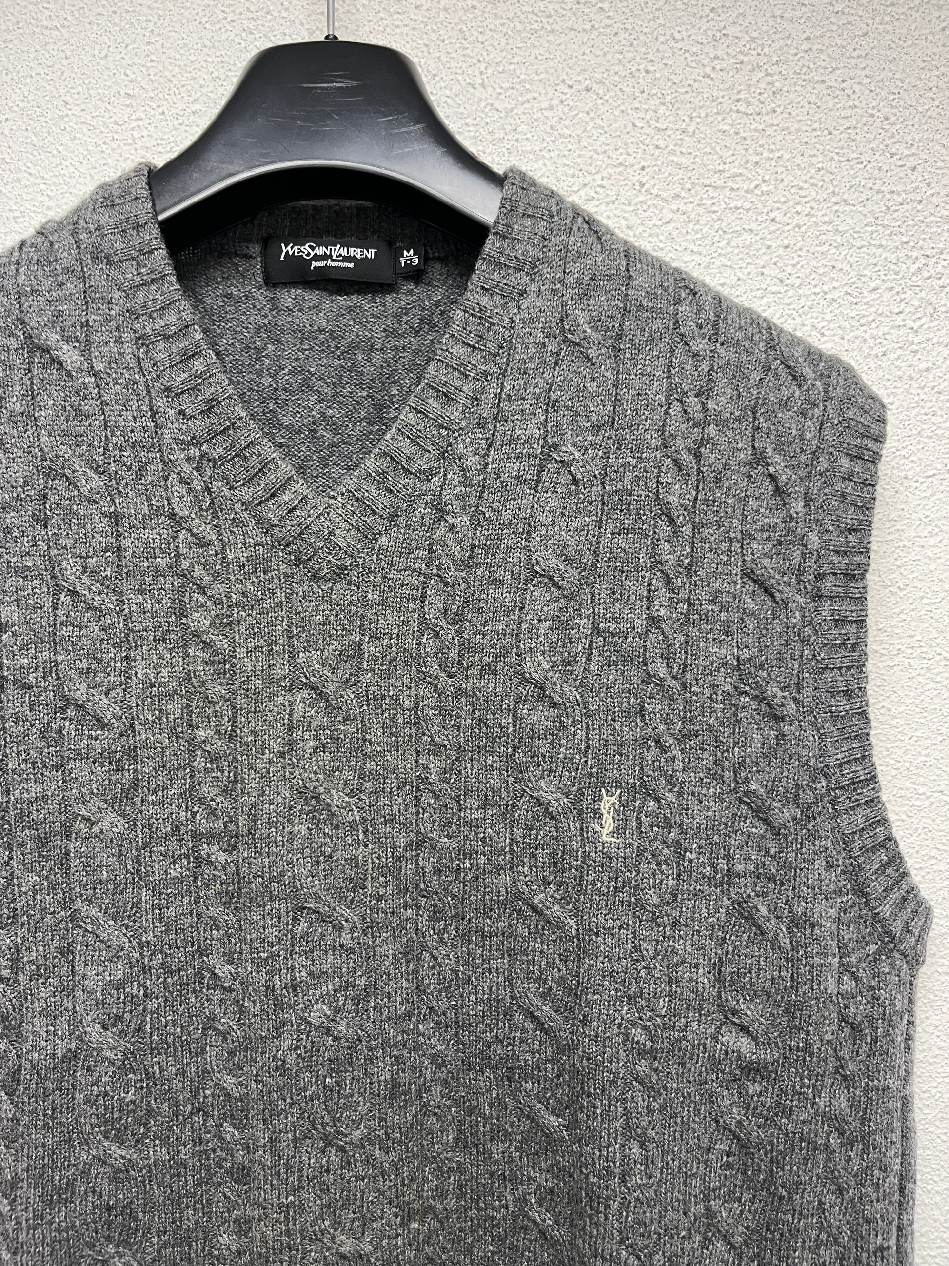 YVES SAINT LAURENT wool grey cable knit vest (M)